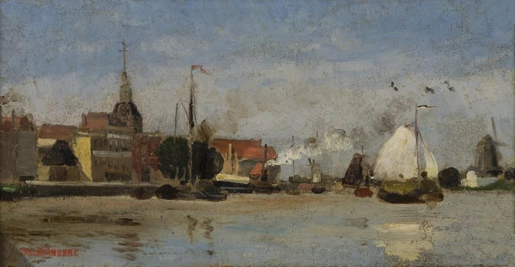 Carl Skånberg, actief in het begin van de 20e eeuw, wordt erkend om zijn maritieme landschappen die de essentie van het havenleven vastleggen. Geïnspireerd door de impressionisten, wist hij licht en kleur te combineren om unieke sferen te creëren. Zijn werk onderscheidt zich door een bijzondere aandacht voor details en een vermogen om de stemming van de scènes die hij afbeeldt over te brengen. Skånberg heeft vluchtige momenten weten te vereeuwigen, waardoor zijn werken waardevolle getuigenissen worden van de Nederlandse maritieme geschiedenis, terwijl hij binnen een rijke en gevarieerde artistieke traditie blijft.
