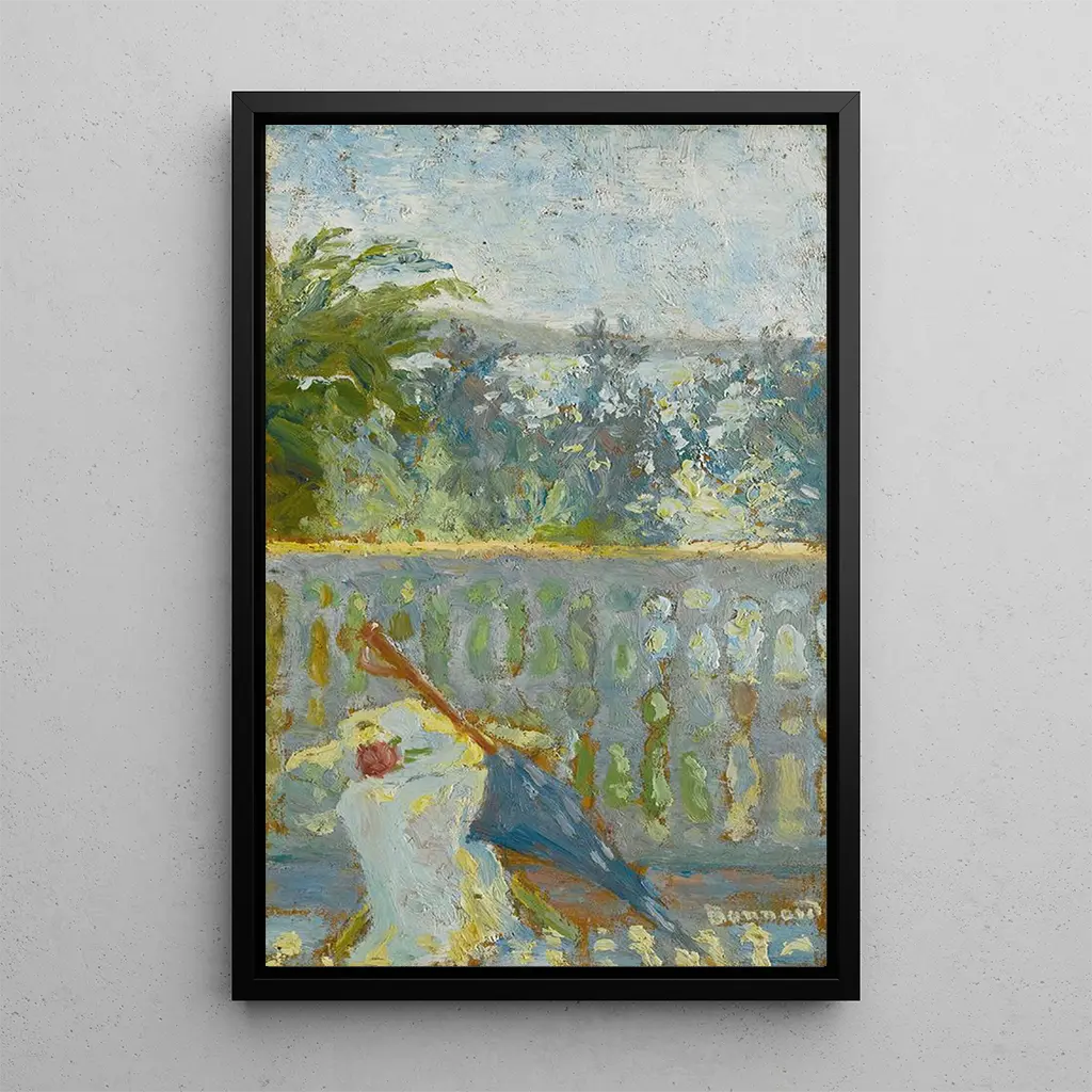 Pierre Bonnard, figure emblématique du post-impressionnisme, a su capturer la beauté des moments quotidiens avec une sensibilité unique. Né en 1867, il a été influencé par les impressionnistes et le mouvement Nabi, qui prônait une approche plus symbolique de l'art. Ses œuvres, souvent centrées sur la vie domestique et les paysages, témoignent d'une recherche constante de la lumière et de la couleur. "Le balcon et l'ombrelle" s'inscrit dans une période où Bonnard explore les relations entre l'intérieur et l'extérieur, marquant ainsi son importance dans l'évolution de l'art moderne.