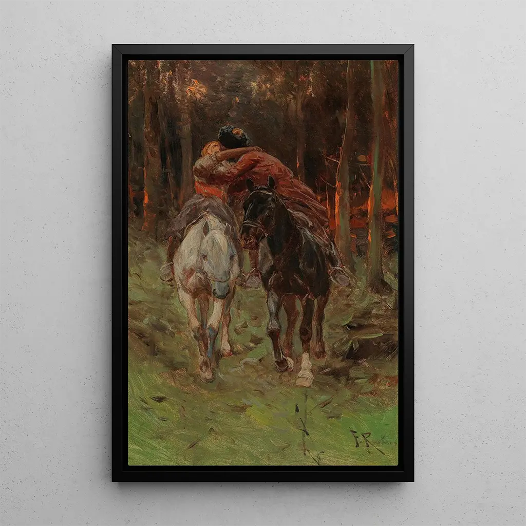 Le Baiser de Franz Roubaud est une œuvre qui évoque la tendresse et la passion à travers une composition délicate. Les couleurs chaudes et les nuances douces créent une atmosphère romantique, tandis que les figures enlacées semblent flotter dans un monde de rêve. La technique de Roubaud, mêlant finesse et expressivité, permet de ressentir l'intensité des émotions entre les protagonistes. Chaque détail, des gestes aux regards, est soigneusement travaillé pour transmettre la magie d'un instant partagé, faisant de cette toile une véritable ode à l'amour.