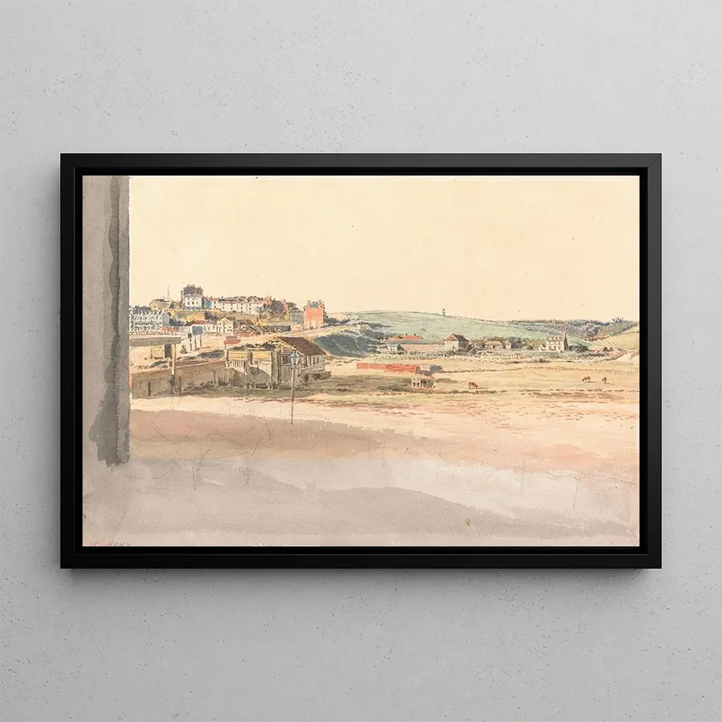Le mât de pavillon Margate : une scène maritime empreinte de sérénité Dans "Le mât de pavillon Margate", William Henry Hunt capture l’essence d’un port anglais baigné par la lumière douce du matin. La toile se distingue par ses couleurs pastel délicates, où les nuances de bleu et de beige se mêlent harmonieusement, évoquant une atmosphère paisible. Les voiles blanches flottent doucement au gré du vent, tandis que les silhouettes des bateaux se dessinent avec précision sur l’eau calme. La technique de l’aquarelle, maîtrisée par Hunt, permet de créer des effets de transparence et de luminosité, transportant le spectateur au cœur de cette scène maritime. Chaque détail, des reflets sur l’eau aux nuages épars, contribue à une invitation à la contemplation. William Henry Hunt : un maître de l’aquarelle victorienne William Henry Hunt, actif au XIXe siècle, est reconnu pour son talent exceptionnel dans le domaine de l’aquarelle. Influencé par le mouvement préraphaélite, il se distingue par sa capacité à capturer la beauté de la nature avec une précision minutieuse. Ses œuvres, souvent inspirées par des paysages britanniques, témoignent d’un profond respect pour l’environnement et d’une attention particulière aux détails. Hunt a également été un membre influent de la Royal Watercolour Society, contribuant à l’évolution de l’aquarelle en tant que forme d’art respectée. "Le mât de pavillon Margate" s’inscrit dans cette tradition, offrant un aperçu de la vie maritime tout en révélant l’habileté technique de l’artiste. Une acquisition décorative aux multiples atouts Opter pour la reproduction "Le mât de pavillon Margate" est un choix judicieux pour embellir votre intérieur. Que ce soit dans un salon, un bureau ou une chambre, ce tableau apporte une touche de sérénité et de sophistication. Sa palette douce et ses motifs apaisants s’intègrent parfaitement dans divers styles de décoration, du classique au contemporain. La qualité de la kunstdruk garantit une fidélité remarquable à l’œuvre originale, permettant de profiter de son attrait esthétique sans compromis. En ajoutant cette toile à votre collection, vous invitez non seulement l’art dans votre espace, mais vous créez également une atmosphère propice à la détente et à la contemplation.