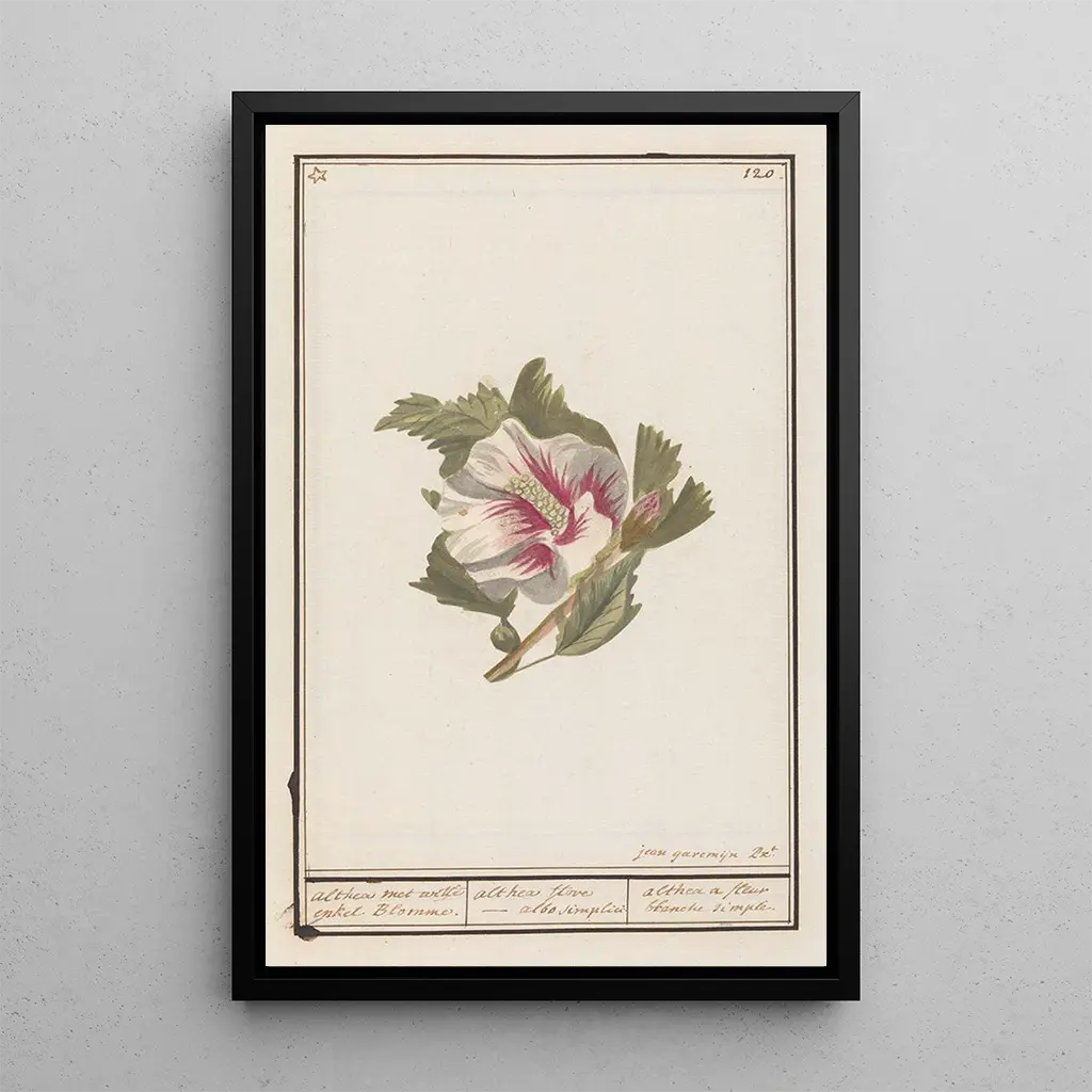 De kunstdruk Hibiscus Hibiscus syriacus van Anselmus Botius de Boodt is een ware ode aan de natuur. Dit werk, rijk aan details, toont een levendige bloei waarbij de nuances van roze en paars harmonieus verweven zijn. De olieverftechniek maakt het mogelijk om de delicate textuur van de bloemblaadjes vast te leggen, terwijl de subtiel vervaagde achtergrond de schoonheid van de bloemen benadrukt. De sfeer die van dit doek uitgaat, roept een gevoel van sereniteit en frisheid op, en nodigt de kijker uit om zich onder te dompelen in een weelderige tuin, waar elke hibiscus een verhaal lijkt te vertellen.