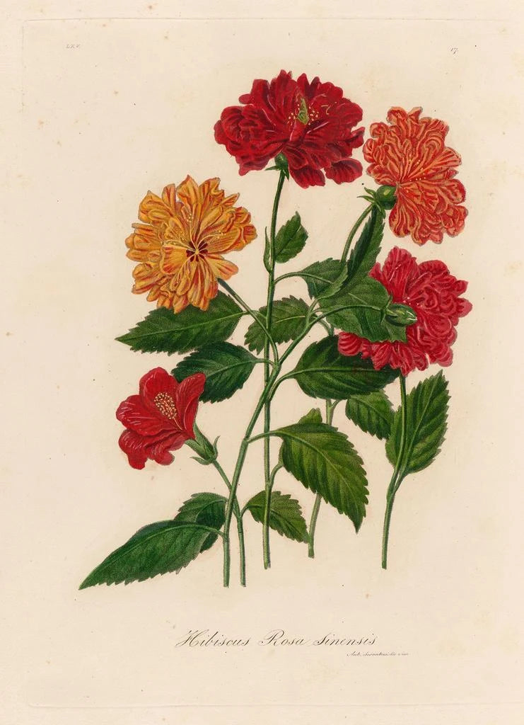 Schilderij Hibiscus rosa-sinensis - Gaetano Savi | Kunstdruk