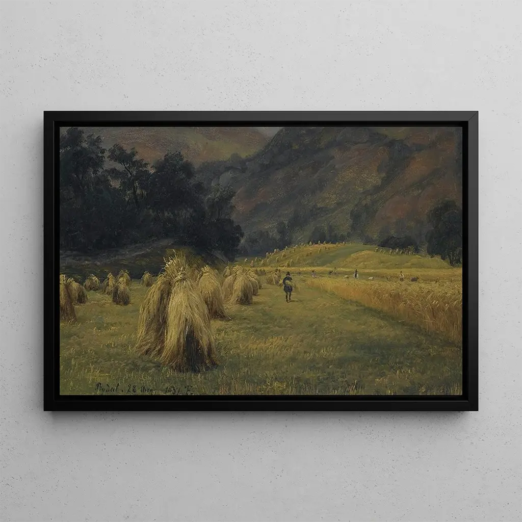Thomas Fearnley, Noorse schilder uit de 19e eeuw, wordt erkend om zijn romantische landschappen die de natuurlijke schoonheid van zijn geboorteland en daarbuiten vieren. Geïnspireerd door de romantische beweging, wist hij de nuances van licht en atmosfeer vast te leggen, en eer te betonen aan de natuur in al haar pracht. Fearnley reisde door Europa en liet zich inspireren door Engelse en Italiaanse landschappen, wat zijn stijl verrijkte. Zijn bijdrage aan het landschapsschilderkunst is onmiskenbaar, en zijn werken blijven kunstenaars van nu inspireren. Rijen hooi Rydal Cumbria is een perfect voorbeeld van zijn talent, dat realisme en poëzie combineert.