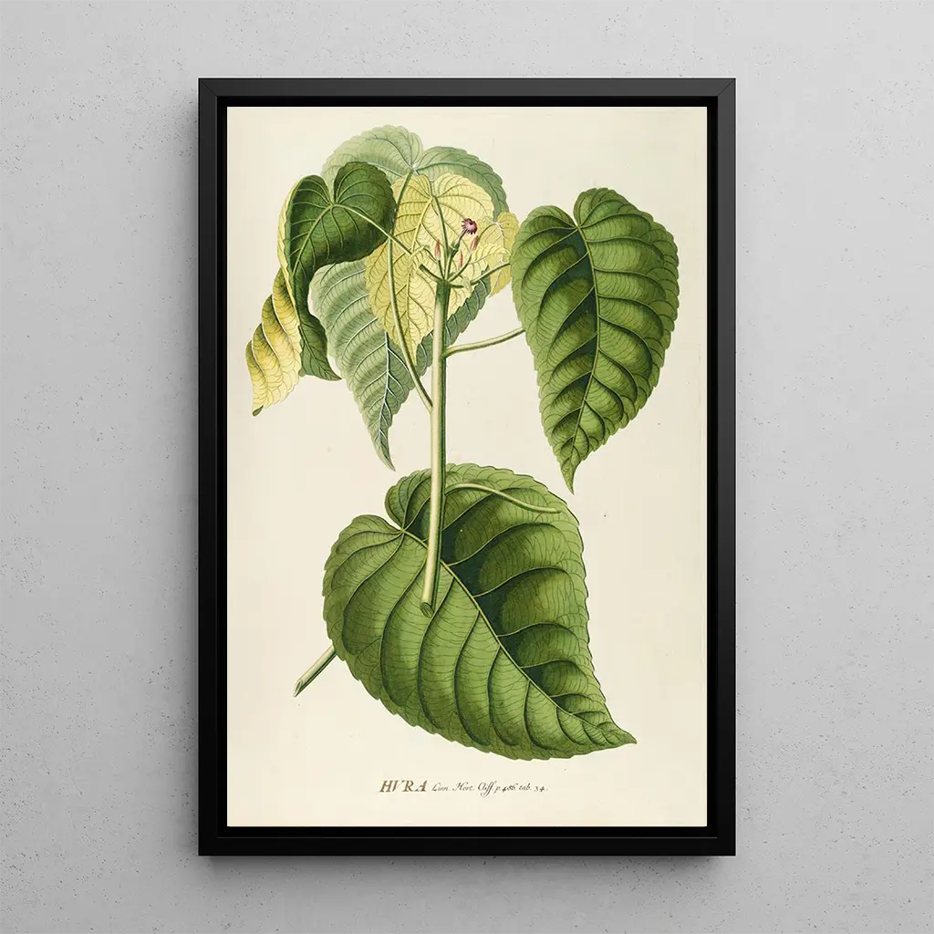 De kunstdruk Hura van Georg Dionysius Ehret brengt ons naar het hart van een boeiende botanische voorstelling. Dit werk belicht de Hura-plant, met zijn organische vormen en rijke kleuren die een gevoel van vitaliteit oproepen. De nuances van groen en bruin, gecombineerd met accenten van fellere kleuren, creëren een harmonisch en dynamisch tableau. De graveertechniek die door Ehret wordt gebruikt, maakt het mogelijk om elk detail met indrukwekkende precisie weer te geven, waardoor de kijker wordt uitgenodigd om de subtiliteiten van de natuur te verkennen. Dit werk is een ware ode aan de plantenkunst, die de diversiteit en complexiteit van de natuurlijke wereld viert.