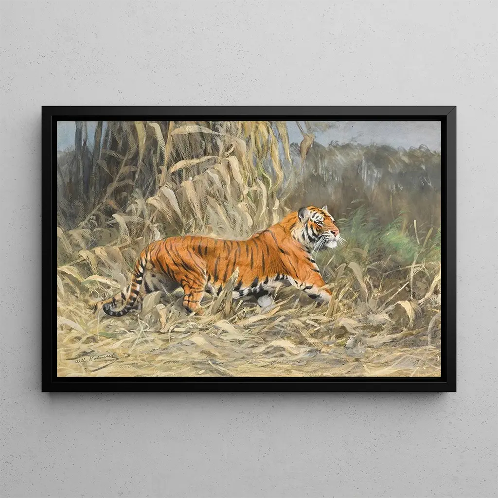 Wilhelm Kuhnert, Duitse schilder en illustrator uit het begin van de 20e eeuw, staat bekend om zijn boeiende werken die de natuur en dieren weergeven. Geïnspireerd door zijn reizen in Afrika, wist hij de essentie van het wilde leven vast te leggen met opmerkelijke precisie. Zijn stijl, die realisme en gevoeligheid combineert, heeft zijn tijd gekenmerkt en bijgedragen aan een nieuwe blik op de fauna. Kuhnert was ook een fervent voorstander van natuurbescherming, en zijn werken blijven een diepe respect voor het milieu en haar bewoners inspireren.