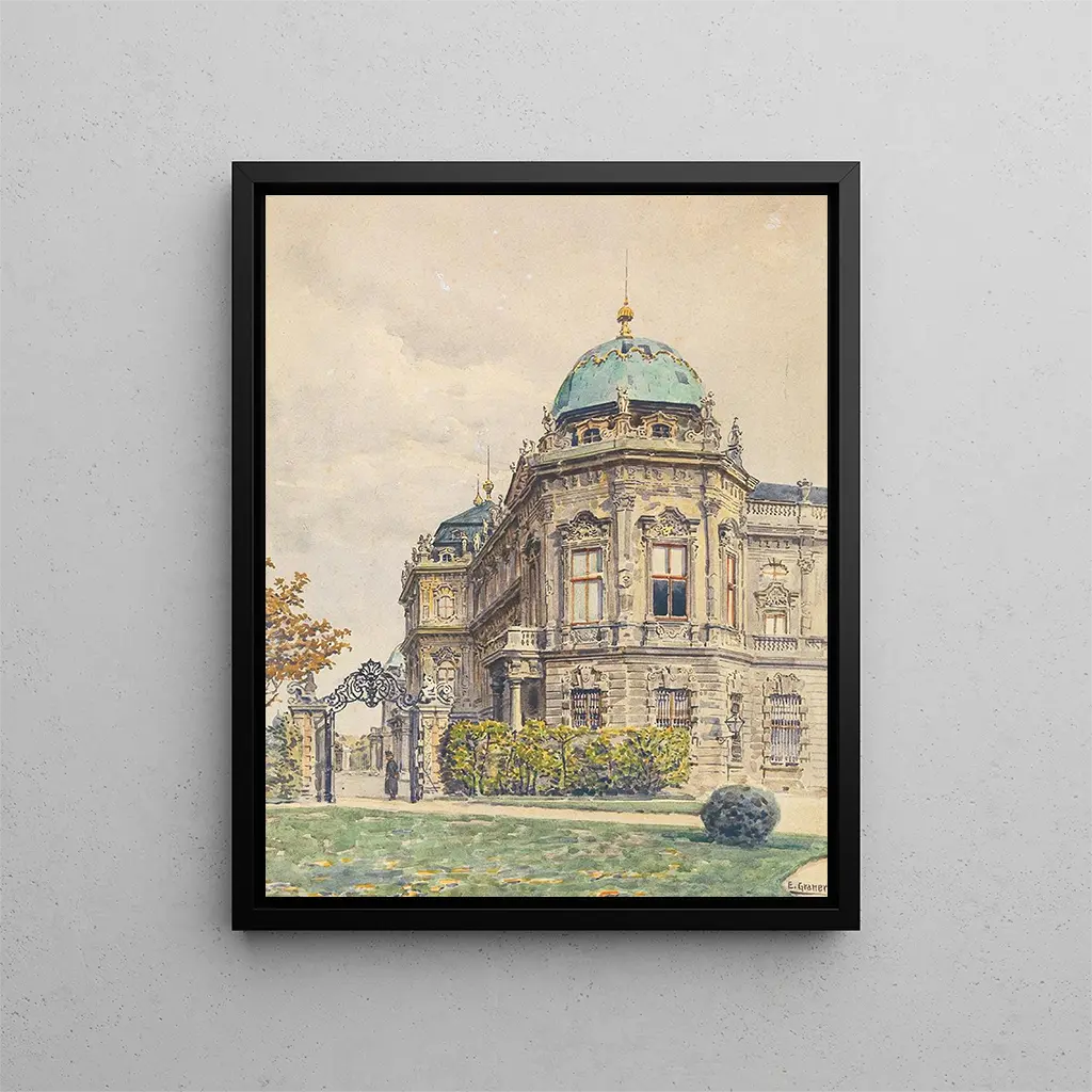 Reproductie Entree van de Bovenste Belvédère - Ernst Graner – Boeiende introductie De kunstdruk "Entree van de Bovenste Belvédère" van Ernst Graner roept een sfeer van grootsheid en rust op, en nodigt de kijker uit om een wereld binnen te treden waar kunst en natuur harmonieus samenkomen. Deze voorstelling, doordrenkt met verfijning, voert ons mee naar een majestueuze tuin, waar klassieke architectuur zich mengt met weelderig groen. Graner, met zijn scherpe blik, slaagt erin de essentie van deze iconische ruimte vast te leggen, en biedt een poëtische visie die verder gaat dan een gewoon landschap. Bij het bekijken van dit werk dwaalt de geest af, en voelt men een diepe wens om de wonderen te ontdekken die zich achter elke boog en elk blad verbergen. Stijl en uniekheid van de kunstdruk De stijl van Ernst Graner onderscheidt zich door zijn vermogen om architectonische strengheid te combineren met natuurlijke lichtheid. In "Entree van de Bovenste Belvédère" presenteert hij een zorgvuldig uitgebalanceerde compositie, waarbij de geometrische lijnen van de gebouwen verweven zijn met de organische vormen van bomen en bloemen. Het kleurenpalet, subtiel gekozen, roept een zachte licht op die de scène badend maakt, en creëert een sfeer die zowel rustgevend als inspirerend is. Graner slaagt erin een levendige dynamiek in zijn weergaven te brengen, waardoor elk detail bijna tastbaar wordt. Dit werk nodigt uit tot contemplatie, een moment van stilstand waarin de tijd lijkt stil te staan, en de kijker zich volledig kan onderdompelen in de schoonheid van deze betoverende plek. De kunstenaar en zijn invloed Ernst Graner, een iconische figuur uit zijn tijd, wist de kunstwereld te beïnvloeden met zijn unieke visie en onderscheidende aanpak. Geïnspireerd door grote meesters uit het verleden, wist hij de codes van de klassieke kunst te herinterpreteren en er zijn eigen gevoeligheid aan toe te voegen. Graner is niet alleen een schilder, maar ook een oplettende waarnemer van zijn omgeving. Zijn werk getuigt van een diepgaand begrip van licht, ruimte en menselijke emoties. Dankzij zijn talent heeft hij vele hedendaagse kunstenaars geïnspireerd om de grenzen tussen architectuur en natuur te verkennen. De impact van zijn werk is voelbaar voorbij zijn tijd, en herinnert iedereen aan het belang van