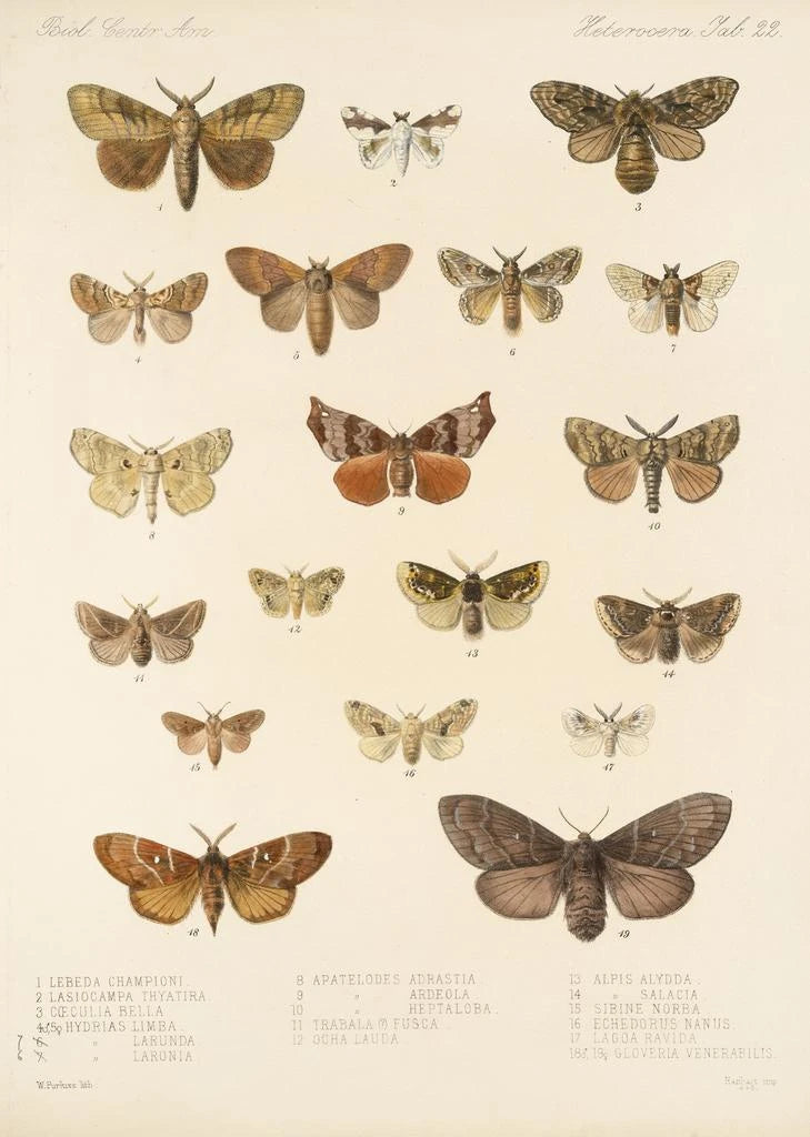 De kunstdruk Insecta Lepidoptera Heterocera Pl 022 is een fascinerend werk dat de delicate schoonheid van nachtvlinders vastlegt. De levendige kleuren en de minutieuze details van de vleugels roepen een sfeer van mysterie en verwondering op. Elk insect wordt met wetenschappelijke precisie weergegeven, terwijl het een artistiek tintje behoudt dat eer betoont aan de natuur. De harmonie van tinten en de diversiteit aan patronen creëren een visueel boeiende compositie, die de kijker uitnodigt om onder te dompelen in de fascinerende wereld van de lepidoptera.