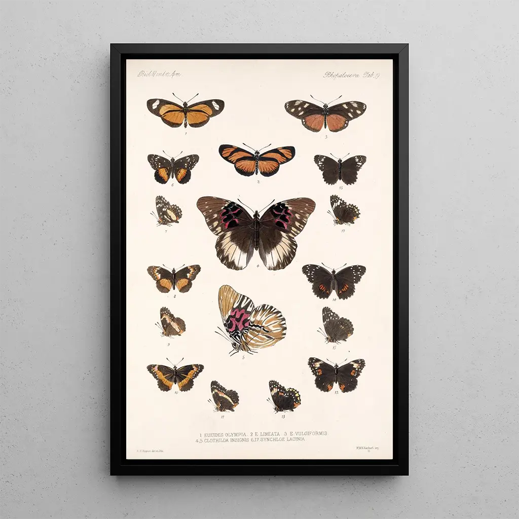 De kunstdruk van het schilderij Insecta Lepidoptera Rhopalocera Pl 019 van Frederick DuCane Godman brengt ons in een wereld vol kleuren en texturen, waar elke vlinder een kunstwerk op zich wordt. De minutieuze details en het heldere kleurenpalet roepen de lichtheid en gratie op van deze vliegende wezens. Godman, met zijn wetenschappelijke aanpak, slaagt erin de essentie van deze insecten vast te leggen, waardoor een sfeer ontstaat die zowel educatief als esthetisch is. Dit schilderij is een ware viering van de natuur, die uitnodigt tot verwondering.