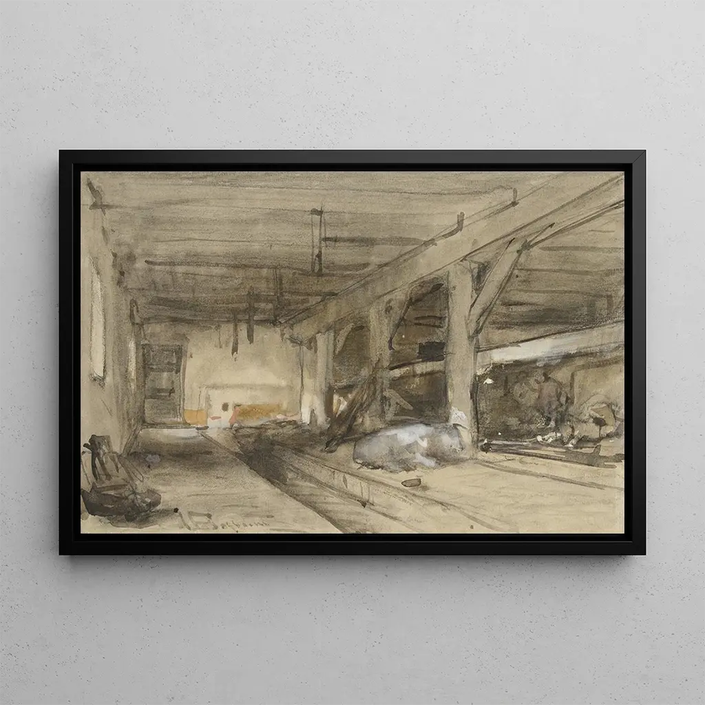 Deze kunstdruk van Binnenkant van een stallen is een ideaal decoratief stuk voor diverse ruimtes, of het nu in een woonkamer, kantoor of slaapkamer is. De kwaliteit van de afdruk en de trouw aan het originele werk maken het een aantrekkelijke keuze voor kunstliefhebbers. Het schilderij brengt warmte en authenticiteit in uw interieurdecoratie, terwijl het nieuwsgierigheid en bewondering opwekt. Met zijn rustgevende esthetiek zal deze doek uw woonruimte verrijken en een gastvrije en inspirerende sfeer creëren.