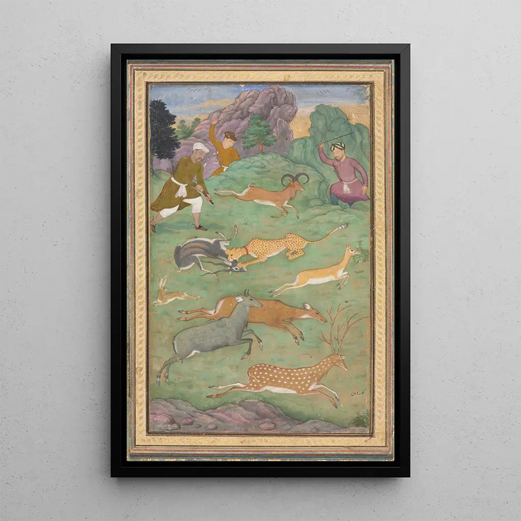Kunstdruk | Jacht op antilope en hert - Govardhan