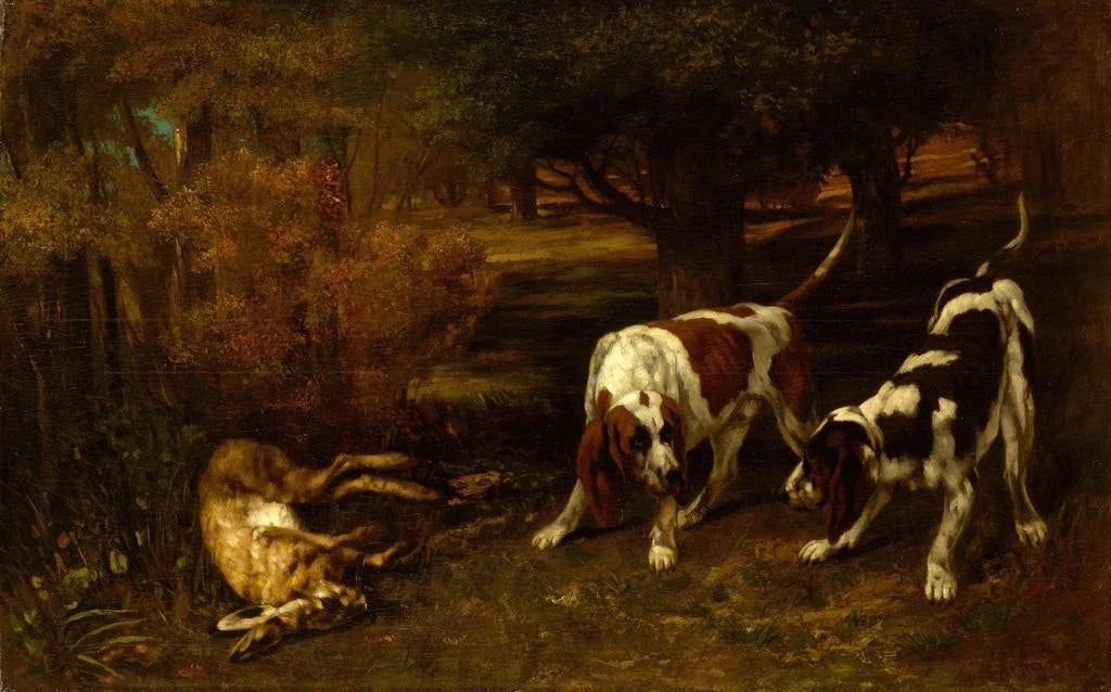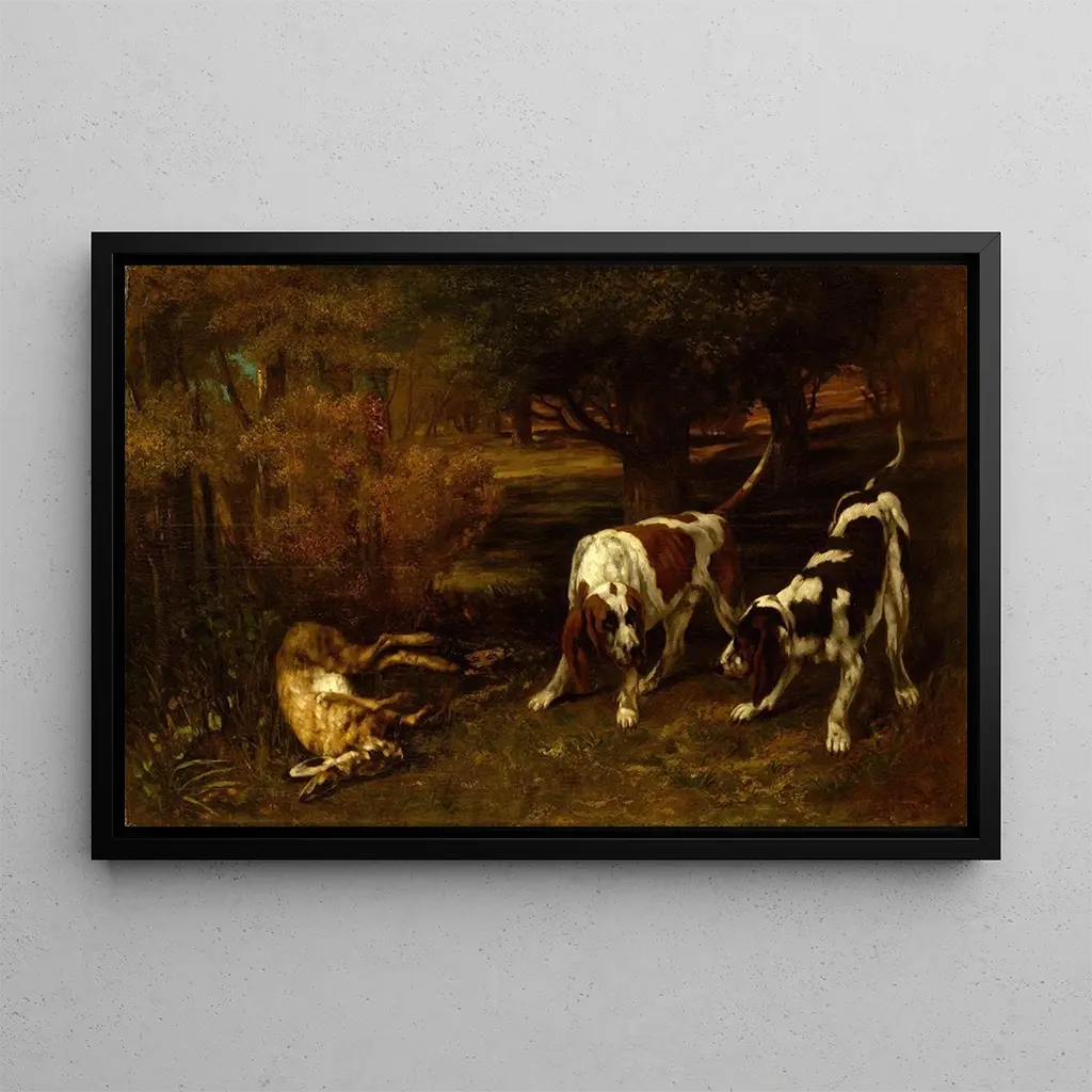 Kunstdruk | Jachthonden met dode haas - Gustave Courbet