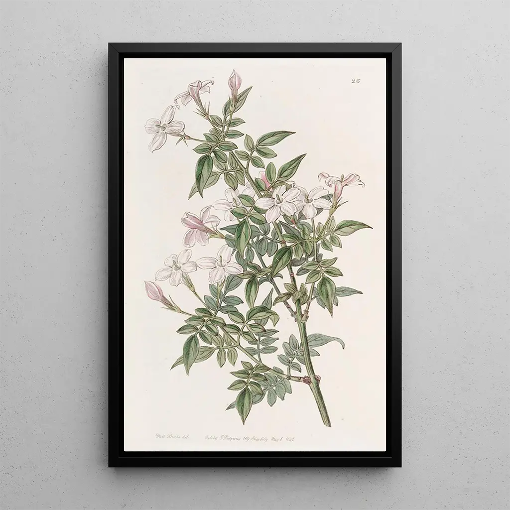 De kunstdruk van "Jasmin verwant" is een ideaal decoratief stuk om je interieur te verrijken, of het nu in een woonkamer, kantoor of slaapkamer is. De afdrukkwaliteit garandeert een opmerkelijke trouw aan de kleuren en details van het originele kunstwerk, wat een vleugje elegantie aan je ruimte toevoegt. Dit kunstwerk, met zijn esthetische aantrekkingskracht, past perfect in diverse decoratiestijlen, van klassiek tot modern. Door voor deze doek te kiezen, kies je voor een kunstdruk die niet alleen je omgeving verfraait, maar ook een waardering voor de schoonheid van de natuur en de botanische kunst uitstraalt.