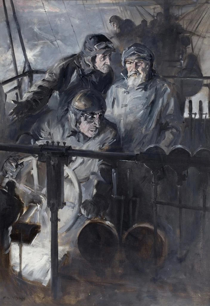 Frederick Coffay Yohn, actief in het begin van de 20e eeuw, wordt erkend om zijn werken die historische en militaire thema's illustreren. Geïnspireerd door de realistische beweging, specialiseerde hij zich in het weergeven van veldslagen en heroïsche momenten. Zijn werk werd vaak besteld door militaire instellingen, wat de betekenis van zijn kunst binnen de context van propaganda en collectief geheugen onderstreept. Yohn wist techniek en verhaalvertelling te combineren, waardoor hij schilderijen creëerde die niet alleen visuele representaties zijn, maar krachtige en evocatieve verhalen vertellen.