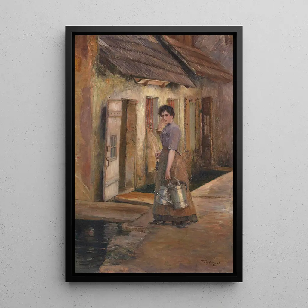 Franz Skarbina, geboren in 1849 in Berlijn, is een iconische figuur van het Duitse realisme. Geïnspireerd door de grote meesters van zijn tijd, ontwikkelde hij een stijl die precisie en gevoeligheid verenigt. Zijn werken, vaak gericht op alledaagse thema's, getuigen van een diepgaand begrip van de mensheid. "Jeanette" is een perfect voorbeeld van zijn talent, dat niet alleen de fysieke schoonheid, maar ook de essentie van vrouwelijkheid vastlegt. Door zijn portretten wist Skarbina vluchtige momenten te vereeuwigen, waardoor hij een onmisbare kunstenaar werd van de 19e eeuw.