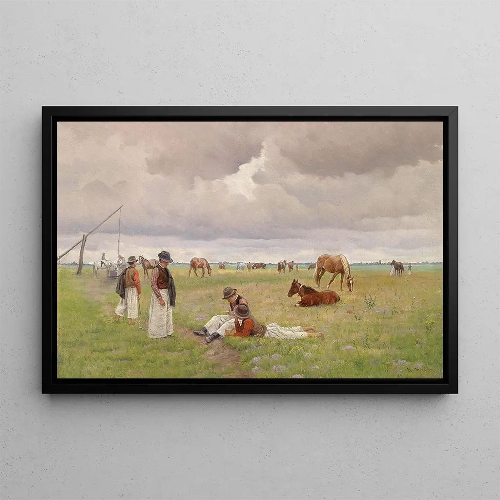 Hermann Reisz, een Hongaarse schilder, staat bekend om zijn weergaven van het landelijke leven en de landschappen van de Puszta. Actief in de 19e eeuw, wist hij de essentie van de natuur en de tradities van zijn land vast te leggen. Geïnspireerd door de romantische beweging ontwikkelde Reisz een stijl die de schoonheid van alledaagse scènes benadrukt, ver weg van stedelijke tumulten. Zijn werken, vaak doordrenkt met nostalgie, getuigen van een tijd waarin de natuur centraal stond in het leven van mensen, waardoor hij een belangrijke kunstenaar is om de evolutie van landschapskunst in Europa te begrijpen.