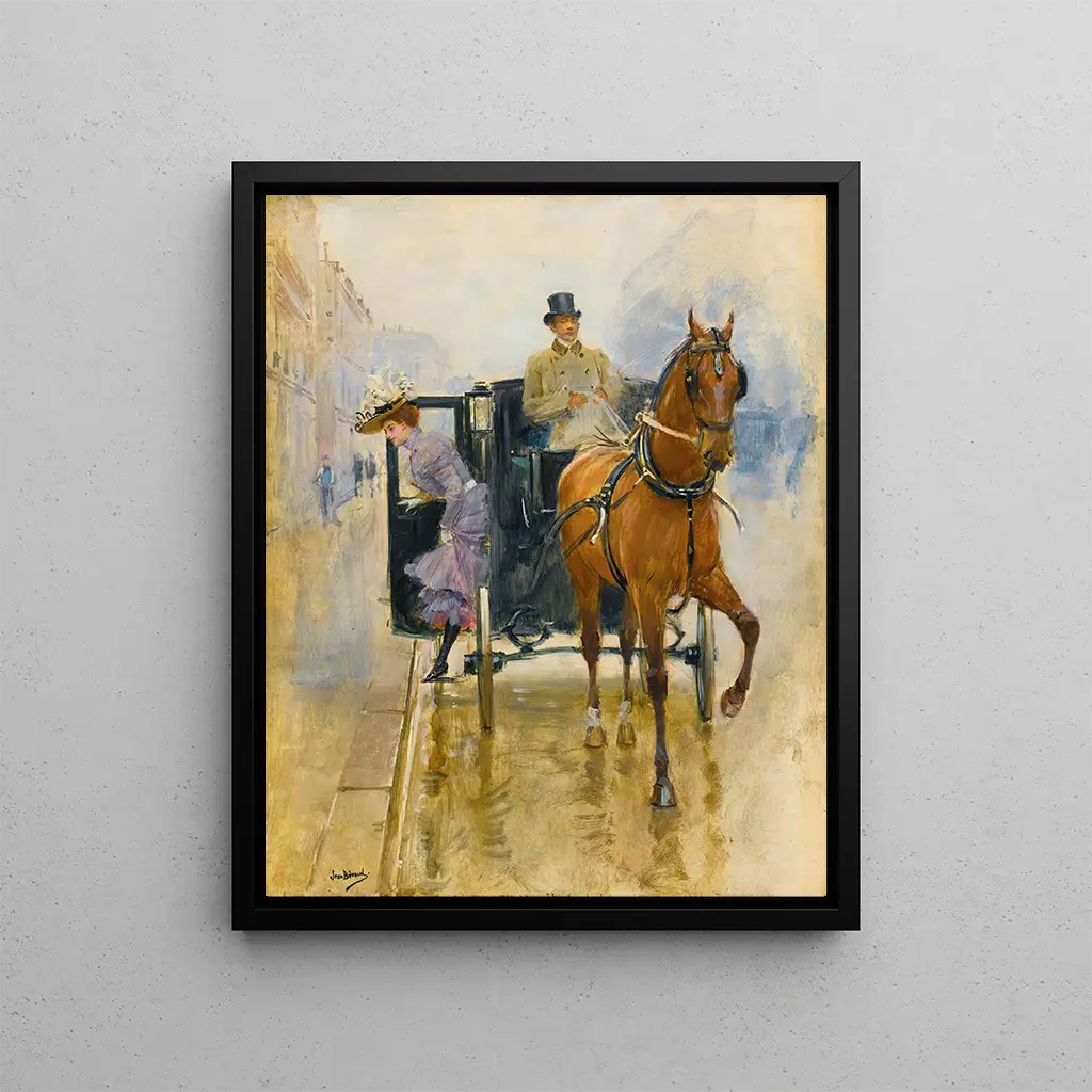 Jonge vrouw die uit een fiacre stapt - Jean Béraud