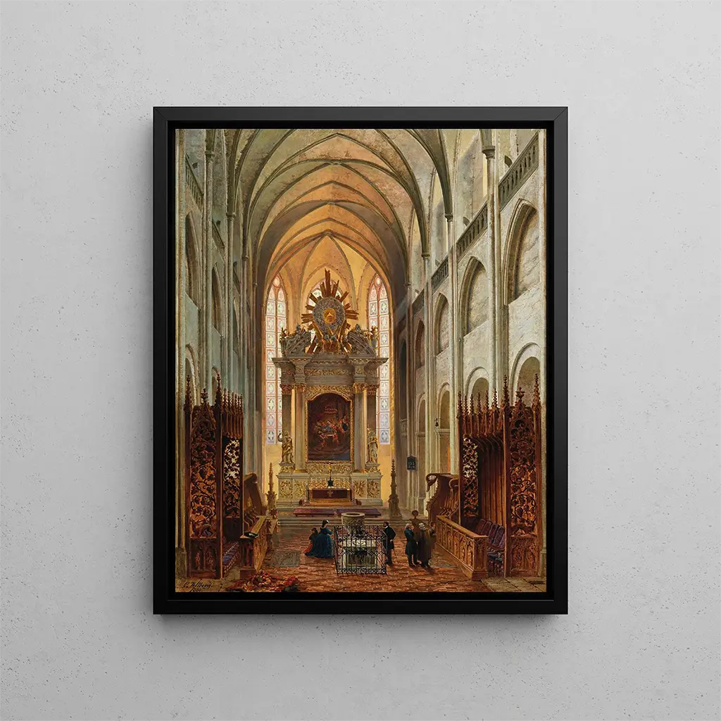 Het werk van Wilberg onderscheidt zich door zijn minutieuze aanpak en zijn scherpzinnige gevoel voor detail. Elke steen, elke boog en elk raam van de kathedraal wordt weergegeven met een precisie die getuigt van diep respect voor gotische architectuur. Het spel van licht, de delicate schaduwen en de subtiele kleur nuances geven de kunstdruk een bijna tastbare diepte. Wilberg slaagt erin niet alleen het fysieke aspect van het gebouw vast te leggen, maar ook de ziel en spiritualiteit ervan. De kathedraal, met haar slanke lijnen en verfijnde ornamenten, wordt zo de weerspiegeling van een tijdperk waarin kunst en geloof nauw verbonden waren. De harmonieuze compositie van het werk, gecombineerd met een beheersde schildertechniek, stelt de kijker in staat de grootsheid en sereniteit te voelen die uit deze heilige ruimte uitstralen.