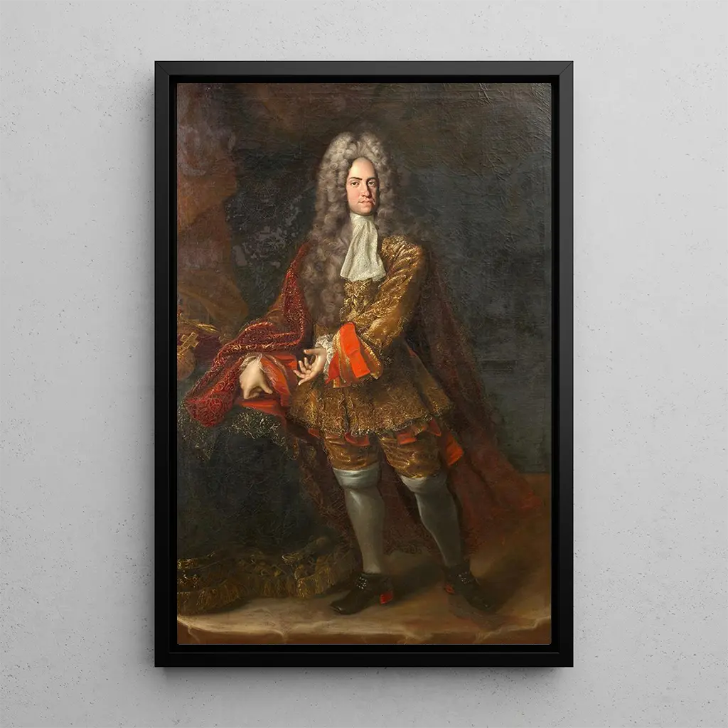 Empereur Charles VI : een koninklijk portret vol geschiedenis De kunstdruk van de Empereur Charles VI dompelt ons onder in het majestueuze universum van het keizerlijke hof. Dit schilderij, vervaardigd met opmerkelijke meesterschap, vangt de essentie van koningschap door de doordringende blik van Charles VI. De rijke kleuren en de verfijnde details van de kleding getuigen van de hoge status van de keizer. De olieverftechniek maakt het mogelijk om de textuur van de stoffen en de glans van de ornamenten weer te geven, waardoor een sfeer van grootsheid ontstaat. Dit portret, tegelijk indrukwekkend en intiem, nodigt de kijker uit om na te denken over de macht en verantwoordelijkheid die een vorst met zich meebrengt. Johann Kupezky : een virtuoos van het barokke portret Johann Kupezky, Tsjechische schilder uit de 17e eeuw, staat bekend om zijn uiterst fijne en expressieve portretten. Opgeleid in de barokke tradities, ontwikkelde Kupezky een persoonlijke stijl die realisme en idealisering combineert. Zijn werk werd beïnvloed door Italiaanse meesters, maar hij integreerde ook elementen uit de centrale Europese cultuur. De kunstdruk van de Empereur Charles VI is een van zijn meest beroemde werken, en illustreert zijn vaardigheid om niet alleen de fysieke verschijning vast te leggen, maar ook de persoonlijkheid van zijn onderwerpen. Via zijn portretten heeft Kupezky bijgedragen aan het vormen van het imago van de adel uit zijn tijd. Een decoratieve aanwinst met vele troeven Het kiezen van de kunstdruk van de Empereur Charles VI betekent een stukje geschiedenis en prestige in huis halen. Dit schilderij, ideaal voor een kantoor of woonkamer, brengt een vleugje elegantie en verfijning in uw interieurdecoratie. De kwaliteit van de kunstdruk garandeert een trouwheid aan de originele details, waardoor u de kracht van Kupezky’s werk volledig kunt ervaren. Met zijn esthetische aantrekkingskracht zal dit doek uw bezoekers boeien en boeiende gesprekken uitlokken. Door deze kunstdruk in uw ruimte te integreren, voegt u een culturele en artistieke dimensie toe aan uw omgeving, terwijl u het erfgoed van een groot keizer viert.