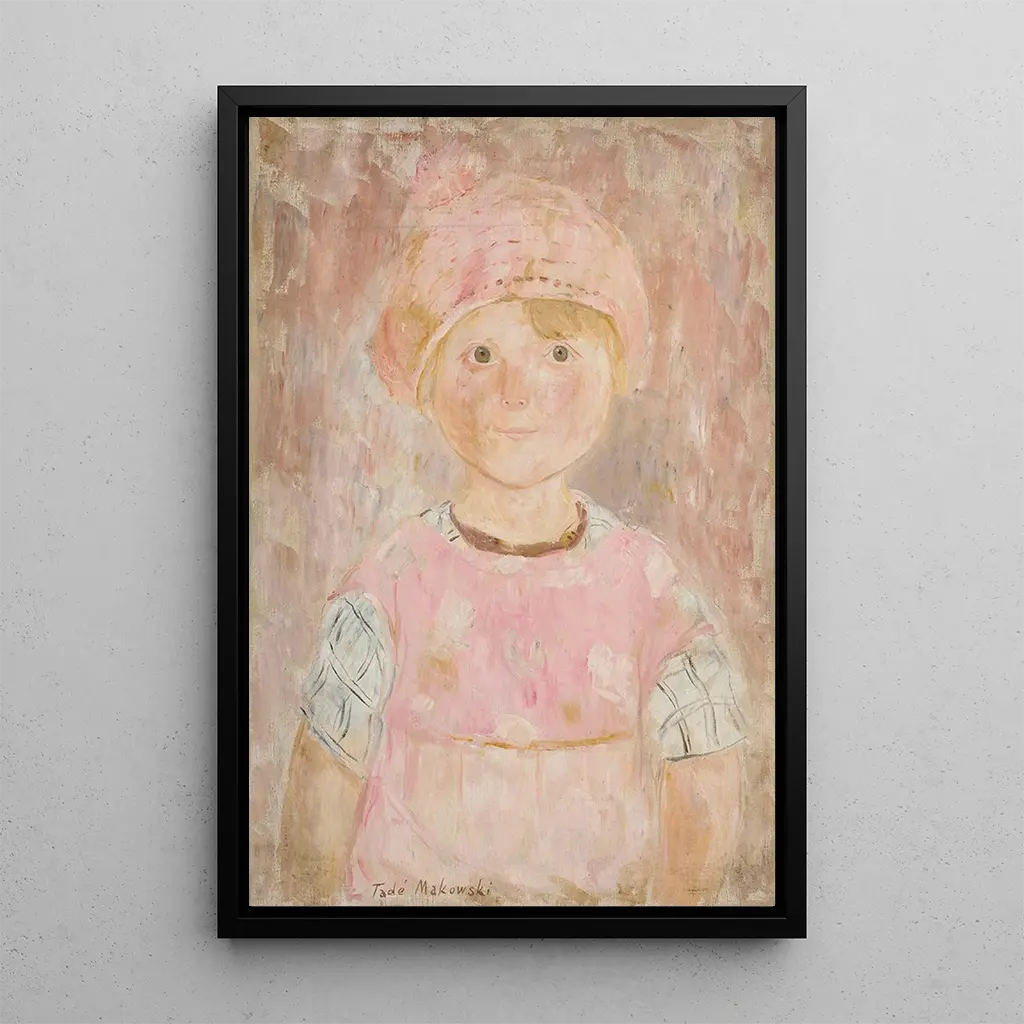 Kunstdruk | Kleine meisje in roze jurk en hoed - Tadeusz Makowski