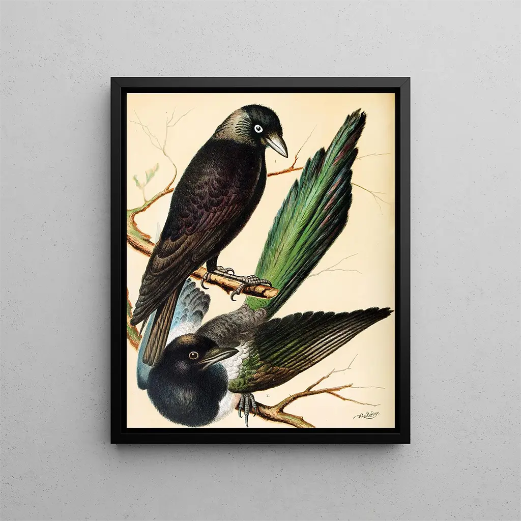 In "Raaf, kraai", W. A. Blakston verkent een minder traditionele kant van de vogelkunde door vogels te benadrukken die vaak als mysterieuzer en donkerder worden gezien. Via dit kunstwerk slaagt de kunstenaar erin om soorten zoals de raaf en de kraai om te toveren tot onderwerpen van schoonheid en elegantie. Blakston speelt met contrasten van licht en schaduw om de diepte van de verenkleed en de persoonlijkheid van de vogels te benadrukken. Dit stuk, zowel donker als fascinerend, kan een dramatisch accent toevoegen aan elk interieur, de aandacht trekken en nieuwsgierigheid opwekken. De kunstdrukken van dit werk zijn een mooie manier om de schoonheid in de vogeldiversiteit te vieren. Ontdek de kunstdruk op Artem Legrand.