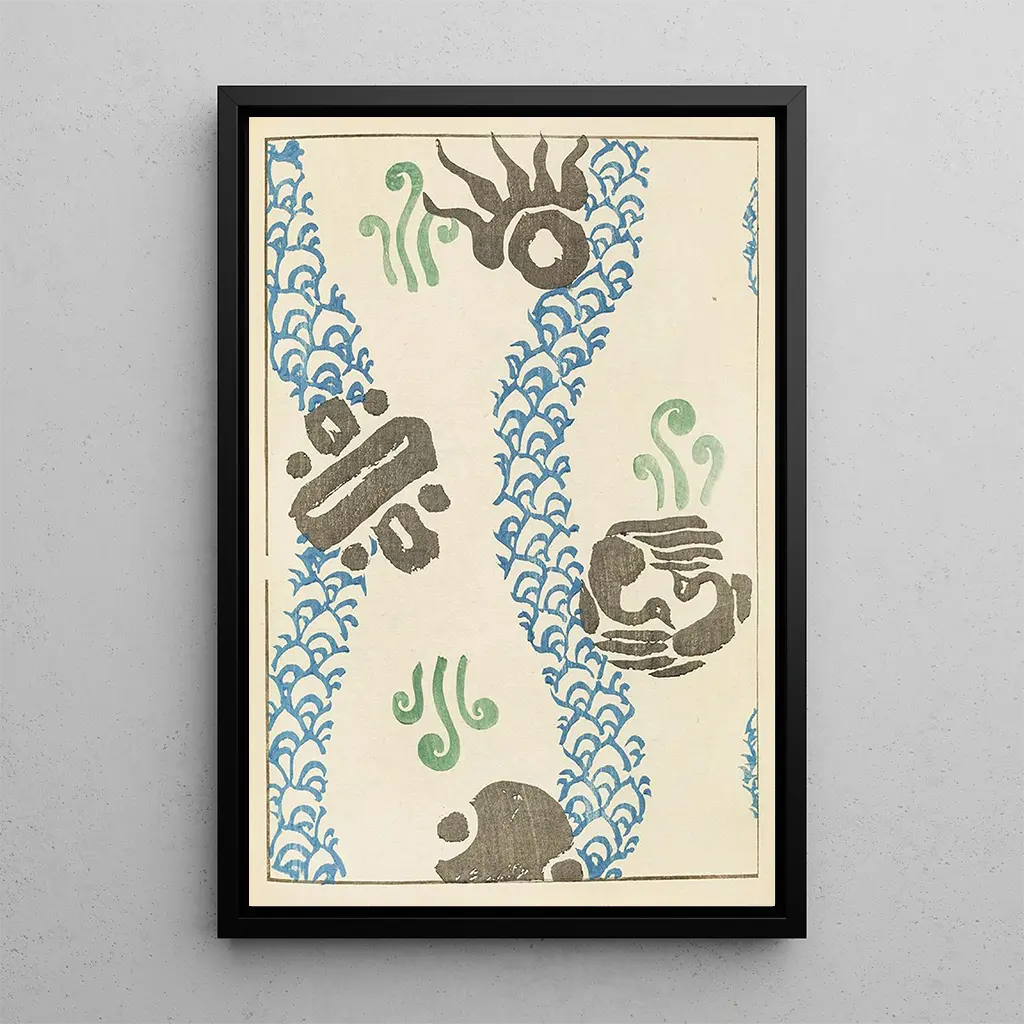 De kunstdruk van Bijutsukai Pl231 dompelt ons onder in een wereld waar de kleuren vibreren en de vormen zich met subtiliteit verweven. Furuya Korin, meester van de Japanse houtsnede, gebruikt rijke tinten en vloeiende patronen om een sfeer te creëren die zowel sereen als dynamisch is. Elk element van de compositie lijkt een verhaal te vertellen, waardoor de kijker wordt uitgenodigd om de nuances en details te verkennen. De techniek van de houtsnede, met zijn overlappende kleuren, geeft het werk diepte die de blik en de verbeelding vasthoudt. Dit doek is een ware ode aan de schoonheid van de natuur, waarbij elke penseelstreek een gevoel van lichtheid en poëzie oproept.