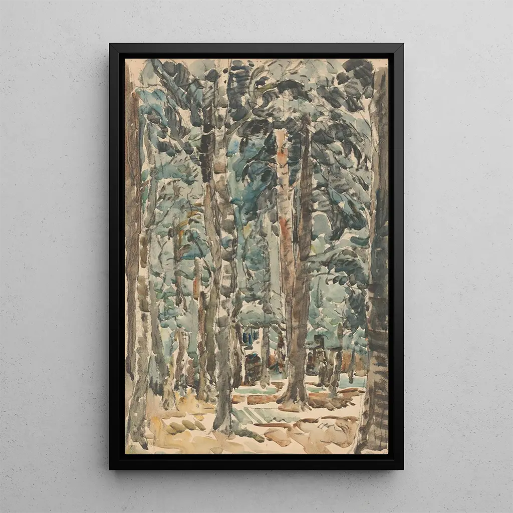 De kunstdruk Landschapskunstdruk, ondertekend door Wilhelmus Johannes Steenhoff, brengt ons naar het hart van een weelderige en ongerepte natuur. De levendige groentinten van de bladeren vermengen zich met de aardse nuances van de boomstammen, waardoor een levendig en dynamisch kunstwerk ontstaat. De techniek van Steenhoff, die de voorkeur geeft aan expressieve penseelstreken, geeft een gevoel van beweging en leven aan het landschap. De rustige sfeer die uit dit werk straalt, nodigt uit tot contemplatie en ontsnapping, waardoor de kijker zich kan onderdompelen in de natuurlijke schoonheid die hem omringt.