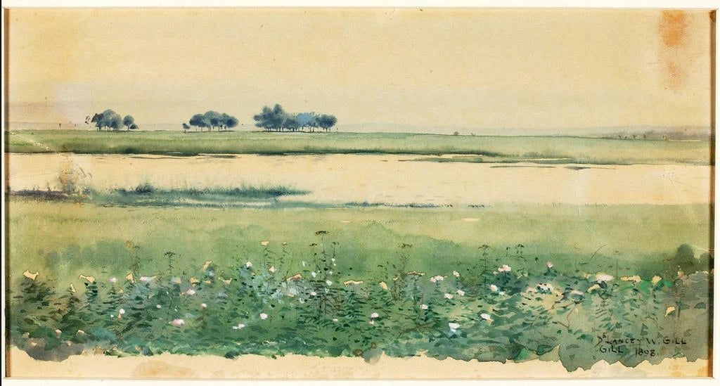 De Lancey Gill, actief in het begin van de 20e eeuw, wordt erkend om zijn evocatieve landschappen die de essentie van de Amerikaanse natuur vastleggen. Geïnspireerd door de impressionistische beweging, ontwikkelde hij een unieke stijl die realisme en poëzie combineert. Zijn werken, vaak geïnspireerd door de landschappen van New England, getuigen van een bijzondere gevoeligheid voor licht en kleur. Gill speelde een belangrijke rol in de evolutie van de landschapsschilderkunst in Amerika en droeg bij aan de waardering van de natuur als artistiek onderwerp.