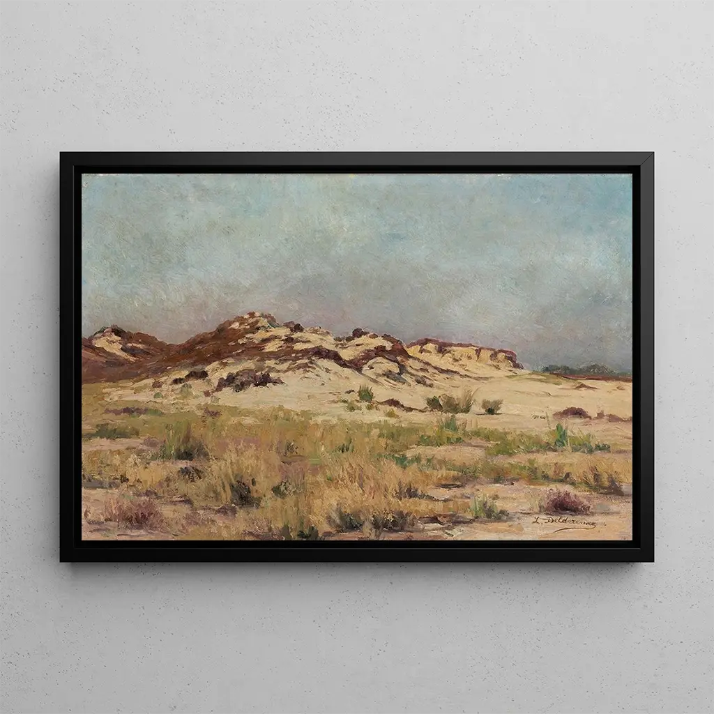 Paysage avec des dunes de sable : une évasion vers des horizons dorés Le tableau "Paysage avec des dunes de sable" de Leon Delderenne transporte le spectateur dans un univers où la nature se dévoile dans toute sa splendeur. Les dunes, sculptées par le vent, se dessinent avec des nuances de beige et d'or, créant un contraste saisissant avec le ciel azur. La technique de l'artiste, qui mêle habilement le réalisme à une touche impressionniste, confère à l'œuvre une atmosphère sereine et contemplative. Les ombres et lumières jouent sur les formes, invitant à une réflexion sur la beauté éphémère des paysages naturels. Leon Delderenne : un maître du paysage au tournant du XXe siècle Leon Delderenne, actif au début du XXe siècle, est reconnu pour ses paysages évocateurs qui capturent l'essence des lieux qu'il peint. Influencé par le mouvement impressionniste, il s'inspire des paysages de la côte belge et des dunes de sable, cherchant à transmettre la lumière et l'ambiance de ses sujets. Bien que moins connu que certains de ses contemporains, son travail est essentiel pour comprendre l'évolution de la peinture de paysage à cette époque. Ses œuvres, souvent empreintes de poésie, témoignent d'un profond respect pour la nature et d'une quête de beauté intemporelle. Une acquisition décorative aux multiples atouts La reproduction du "Paysage avec des dunes de sable" est une pièce décorative idéale pour apporter une touche de sérénité à votre intérieur. Que ce soit dans un salon, un bureau ou une chambre, ce tableau invite à la rêverie et à l'évasion. Sa qualité de reproduction garantit une fidélité aux couleurs et aux détails de l'œuvre originale, permettant de profiter pleinement de son attrait esthétique. En intégrant cette toile dans votre décoration, vous offrez à votre espace une ambiance apaisante et chaleureuse, tout en célébrant le talent d'un artiste qui a su capturer la magie des paysages naturels.