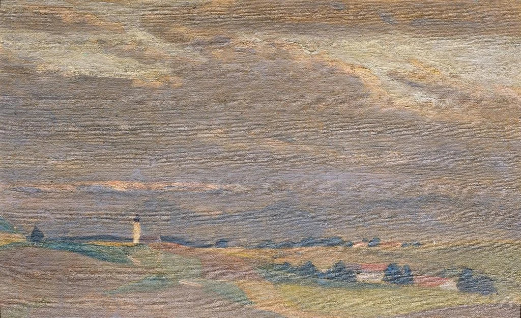 Avondlandschap met kerktoren - Friedrich Hasslwander