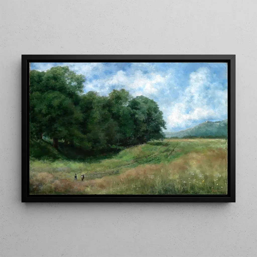 Dans cette kunstdruk du tableau Chemin de campagne près de Kronberg im Taunus, Louis Eysen nous transporte au cœur d'un paysage serein, où la nature s'épanouit sous un ciel lumineux. Les couleurs douces et les nuances délicates de vert et de bleu créent une atmosphère paisible, invitant à la contemplation. La technique impressionniste d'Eysen se manifeste par des coups de pinceau fluides, qui donnent vie aux arbres majestueux et aux champs verdoyants. Ce tableau évoque une promenade tranquille, où chaque détail, des feuilles aux ombres, semble murmurer les secrets de la nature.