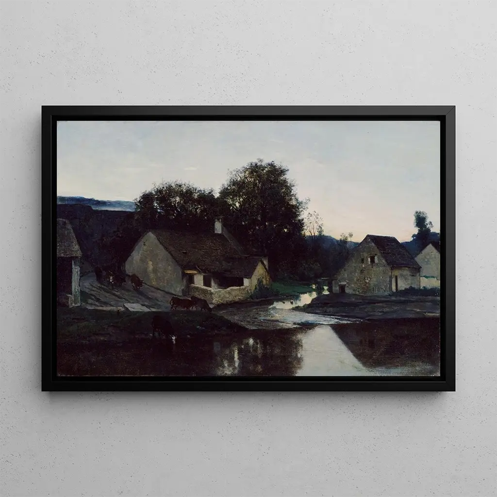Le Hameau d'Optevoz : een idyllisch schilderij doordrenkt met sereniteit De kunstdruk van Le Hameau d'Optevoz van Charles François Daubigny brengt de kijker naar een vredig landschap, waar natuur en architectuur harmonieus samenkomen. De zachte en heldere tinten roepen een gouden licht op, terwijl de details van de huizen en de bomen een sfeer van rust creëren. De techniek van Daubigny, gekenmerkt door snelle en expressieve penseelstreken, brengt deze landelijke scène tot leven. Elk element, van de wolken tot de reflecties in het water, draagt bij aan een evenwichtige compositie die uitnodigt tot ontsnapping en contemplatie. Charles François Daubigny : een meester van het impressionistische landschap Charles François Daubigny, een iconische figuur van de impressionistische beweging, wist de schoonheid van Franse landschappen met een unieke gevoeligheid vast te leggen. Actief in de 19e eeuw, werd hij beïnvloed door kunstenaars zoals Camille Corot en Claude Monet, waarbij hij hun technieken integreerde en tegelijkertijd zijn eigen stijl ontwikkelde. Daubigny schilderde vaak in de open lucht, wat hem in staat stelde het veranderende licht en de sfeer van de landschappen te vangen. Zijn werk speelde een sleutelrol in de evolutie van de landschapsschilderkunst, en hij wordt vandaag erkend als een van de voorlopers van het impressionisme. Een decoratief stuk met vele voordelen De kunstdruk van Le Hameau d'Optevoz is een ideale decoratieve keuze om een vleugje natuur en sereniteit aan uw interieur toe te voegen. Of het nu in een woonkamer, kantoor of slaapkamer is, dit doek combineert perfect met diverse stijlen van inrichting. De kwaliteit van de afdruk garandeert een opmerkelijke trouw aan de kleuren en details van het originele werk, zodat u ten volle kunt genieten van de schoonheid van dit landschap. Door dit kunstwerk in uw ruimte te integreren, creëert u een rustgevende en inspirerende sfeer, terwijl u het talent van een meester van het landschap viert.
