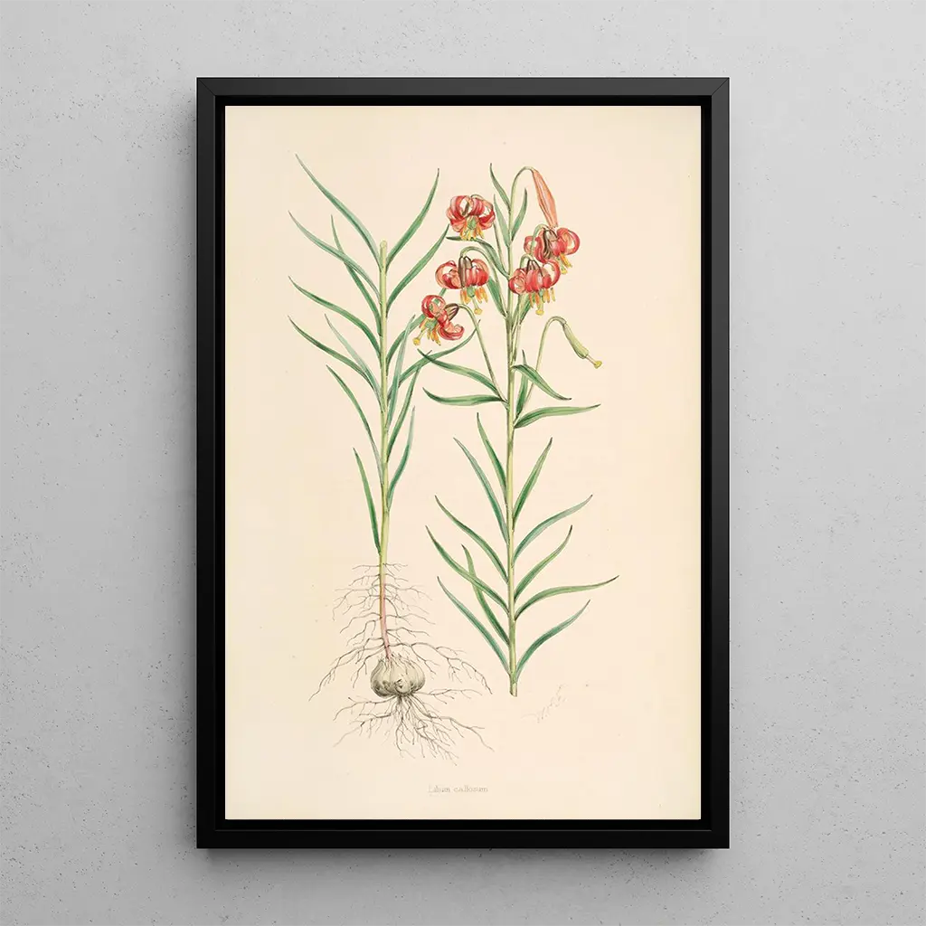Walter Hood Fitch, botanisch illustrator uit de 19e eeuw, speelde een essentiële rol in de documentatie van plantensoorten door zijn kunst. Zijn carrière wordt gekenmerkt door een passie voor botanica en een wens om de schoonheid van planten toegankelijk te maken voor het grote publiek. Geïnspireerd door de wetenschappelijke vooruitgang van zijn tijd, wist Fitch precisie en esthetiek te combineren, waardoor werken ontstonden die referenties zijn geworden in het vakgebied. Lilium callosum is een perfect voorbeeld van zijn aanpak, die wetenschappelijke strengheid en artistieke gevoeligheid combineert.