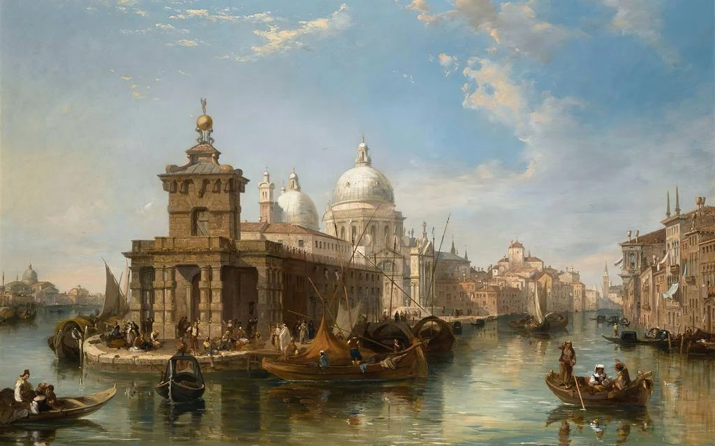 Edward Pritchett, Britse schilder uit de 19e eeuw, staat bekend om zijn weergaven van Europese landschappen, vooral die van Italië. Geïnspireerd door de romantische beweging, wist hij de schoonheid van de locaties vast te leggen met een unieke gevoeligheid. Zijn carrière werd gekenmerkt door reizen door Europa, waar hij inspiratie haalde uit het licht en de kleuren van de landschappen. L'Église de la Salute, gemaakt tijdens zijn verblijf in Venetië, getuigt van zijn vaardigheid om iconische scènes te vereeuwigen en er een dromerige sfeer aan toe te voegen. Pritchett wist met zijn kunst de tijdloze schoonheid van architectuur en Europese landschappen te laten zien.