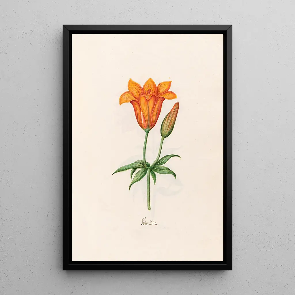 De kunstdruk van het werk "Lys féerique" van Magdalena Rosina Funck brengt ons in een betoverende tuin. De delicate tinten wit en geel verlichten het doek, terwijl de elegante vormen van de lelies lijken te dansen onder het licht. De olieverftechniek die door Funck wordt gebruikt, maakt het mogelijk om elk detail met verbluffende precisie weer te geven, waardoor een sfeer ontstaat die zowel sereen als magisch is. Dit werk roept de zuivere schoonheid en de kwetsbaarheid van bloemen op, en nodigt de kijker uit om zich te verwonderen over de natuur. De lelie, symbool van zuiverheid en elegantie, wordt hier verheven door het talent van de kunstenaar.