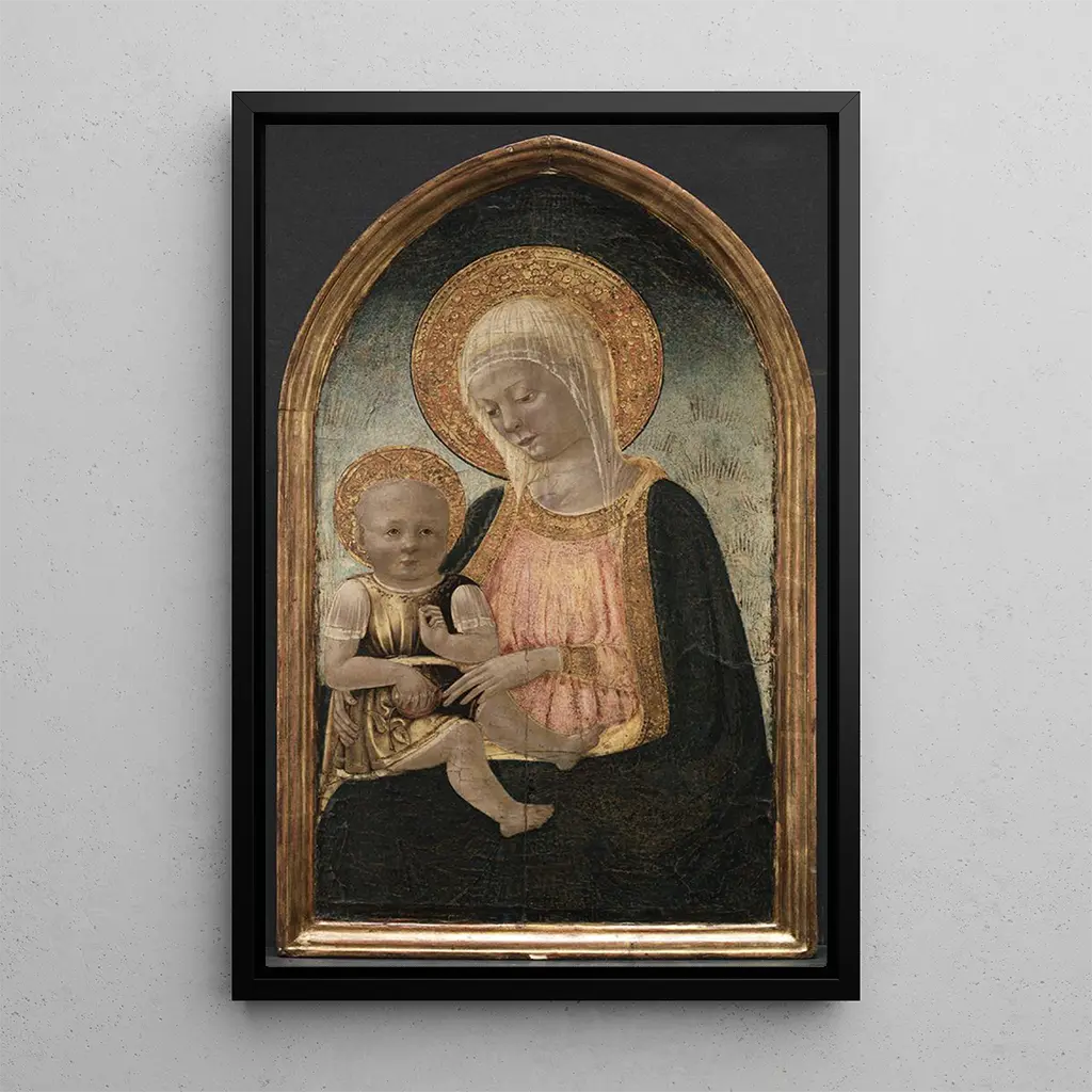 La kunstdruk de la Vierge à l'Enfant de Neri di Bicci évoque une douce intimité entre la mère et son enfant. Les couleurs chaudes et dorées, typiques de la Renaissance italienne, enveloppent la scène d'une atmosphère sereine et apaisante. La technique de la tempera sur bois confère à l'œuvre une texture riche, accentuant les détails délicats des visages et des drapés. Chaque coup de pinceau semble respirer la dévotion, invitant le spectateur à contempler ce moment sacré, où la maternité et la spiritualité se rencontrent.