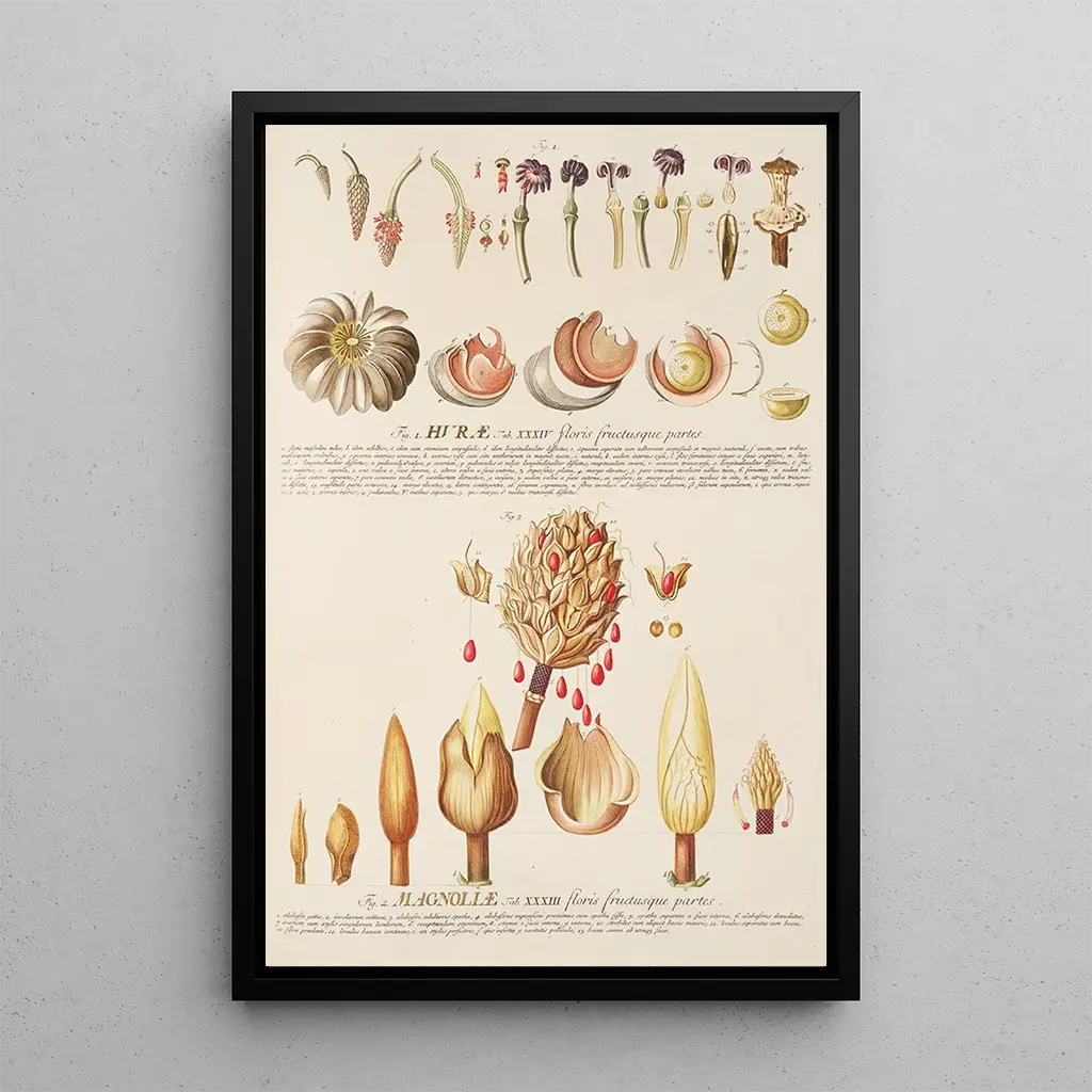 In dit boeiende kunstdruk nodigt Georg Dionysius Ehret ons uit om onder te dompelen in een weelderige tuin waar de Magnolia de Hura met gratie bloeit. De delicate kleuren, variërend van zachtroze tot zuiver wit, verweven harmonieus, waardoor een sfeer van sereniteit en verfijning ontstaat. De aquareltechniek, vakkundig toegepast, brengt de lichtheid van de bloemblaadjes en de diepte van de schaduwen tot leven, waardoor deze majestueuze bloem tot leven komt. Elk detail wordt zorgvuldig bestudeerd, wat getuigt van een diepe liefde voor de natuur en een verlangen om haar vergankelijke schoonheid vast te leggen.