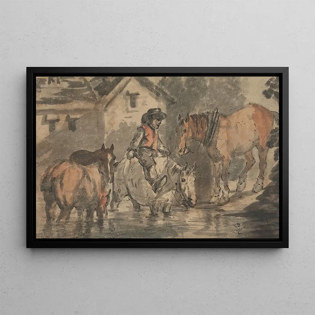 Man die vier paarden besproeit: een landelijke scène vol leven In "Man die vier paarden besproeit" legt Conrad Gessner een moment uit het plattelandsleven vast met verbluffende precisie. Het doek toont een man in interactie met zijn paarden, wat de symbiose tussen mens en dier illustreert. De aardse kleuren en de minutieuze details van de paarden, evenals de geconcentreerde uitdrukking van de man, creëren een levendige en dynamische sfeer. Gessner, met zijn vaardigheid om de natuur en het landbouwwerk weer te geven, dompelt ons onder in een wereld waar de eenvoud van het dagelijks leven in de schijnwerpers staat, en nodigt uit tot reflectie over de band tussen mens en omgeving. Conrad Gessner: een pionier in dieren- en botanische kunst Conrad Gessner, een kunstenaar en naturalist uit de 16e eeuw, wordt erkend voor zijn bijdragen aan dieren- en botanische kunst. Zijn werk onderscheidt zich door een wetenschappelijke en artistieke aanpak, gericht op het documenteren van fauna en flora met opmerkelijke precisie. Geïnspireerd door de ontdekkingen van zijn tijd, wist Gessner minutieuze observatie te combineren met artistiek gevoel, waardoor hij een iconische figuur uit de Renaissance werd. Zijn werk heeft niet alleen het domein van de kunst verrijkt, maar heeft ook bijgedragen aan de kennis van diersoorten, getuigend van een periode waarin exploratie en intellectuele nieuwsgierigheid op hun hoogtepunt waren. Een decoratieve aanwinst met vele voordelen De kunstdruk van "Man die vier paarden besproeit" vormt een boeiend decoratief accent voor diverse ruimtes, of het nu in een kantoor, leeszaal of woonkamer is. De kwaliteit van de reproductie en de aandacht voor details maken het een topstuk voor liefhebbers van dierenkunst en landelijk leven. Dit schilderij, met zijn rustieke charme, brengt een vleugje authenticiteit en warmte in uw interieur. Door voor deze doek te kiezen, geeft u uw ruimte een kunstwerk dat een verhaal vertelt, terwijl u een artistieke dimensie toevoegt aan uw decoratie.