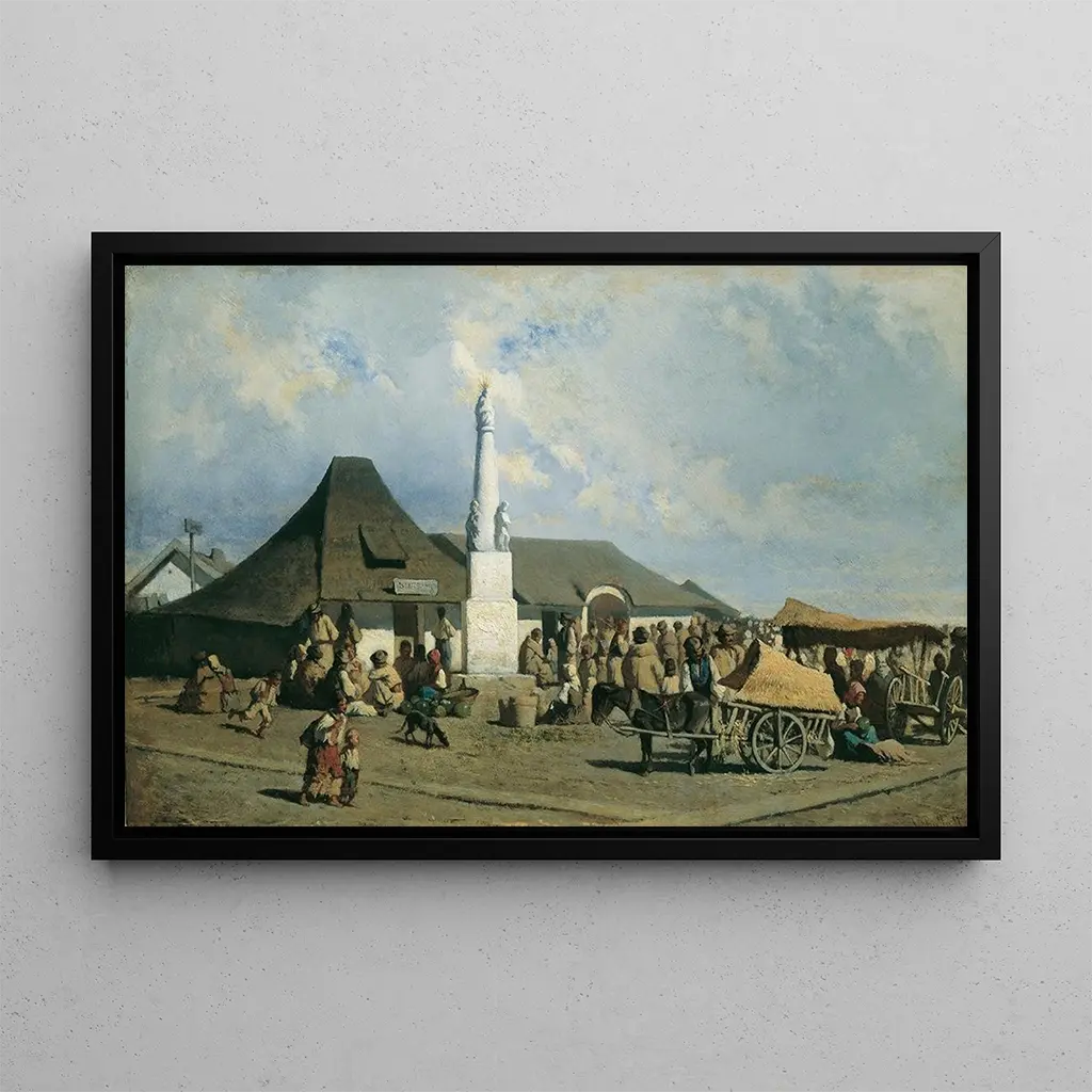 Place du Marché à Szolnok : een levendige scène van het dagelijks leven. In deze kunstdruk van Place du Marché à Szolnok vangt de kunstenaar Johann Gualbert Raffalt de essentie van een levendig moment, waar de heldere kleuren en minutieuze details samenkomen om een warme sfeer te creëren. De tinten groen en blauw domineren het schilderij, wat de frisheid van een zonnige dag oproept, terwijl de rode en oranje accenten een levendige dynamiek toevoegen. De techniek van Raffalt, die impressionisme en realisme combineert, laat bijna de beweging van de personages en de animatie van de markt voelen. Elk element, van de fruitkramen tot de voorbijgangers, draagt bij aan een rijke en boeiende visuele vertelling. Johann Gualbert Raffalt : een getuige van het leven in de 19e eeuw. Oostenrijkse kunstenaar Johann Gualbert Raffalt leefde in de 19e eeuw, een tijd gekenmerkt door sociale en artistieke omwentelingen. Geïnspireerd door de impressionistische beweging, wist hij realistische elementen in zijn werken te integreren, wat een authentiek beeld van het dagelijks leven opleverde. Raffalt reisde door Europa en legde scènes vast van het landelijke en stedelijke leven, waardoor hij een unieke stijl ontwikkelde. Zijn vermogen om vergankelijke momenten te vereeuwigen, maakt hem tot een belangrijke kunstenaar van zijn tijd, wiens werken blijven inspireren en verbazen. Een decoratief kunstwerk met vele voordelen. De kunstdruk van Place du Marché à Szolnok is een ideale keuze om uw interieur te verfraaien, of het nu in een woonkamer, kantoor of slaapkamer is. De kwaliteit van de afdruk en de trouw aan de originele kleuren garanderen een onmiskenbare esthetische aantrekkingskracht. Dit schilderij brengt leven en kleur in elke ruimte, terwijl het gesprekken over kunst en cultuur stimuleert. Door voor deze doek te kiezen, kiest u voor een kunstwerk dat niet alleen decoreert, maar ook uw omgeving verrijkt met zijn verhaal en tijdloze charme.