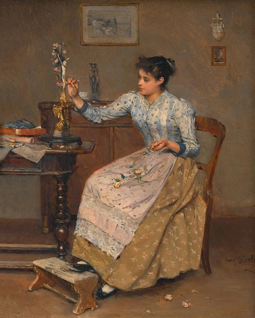 Meisje dat een kruisbeeld met bloemen versiert - Josef Gisela