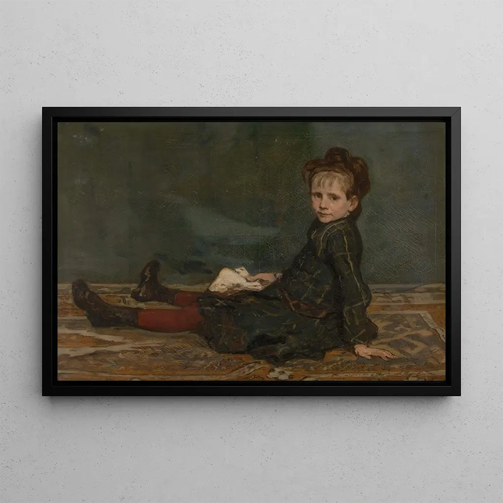 Meisje zittend op een tapijt: een scène van zachtheid en intimiteit In deze kunstdruk van Meisje zittend op een tapijt brengt Alfred Cluysenaar ons in een wereld van sereniteit. De compositie benadrukt een jonge vrouw, zittend op een rijkelijk versierd tapijt, omgeven door warme en rustgevende kleuren. De zachte tinten van het werk, variërend van okers tot blauwtinten, creëren een intieme en contemplatieve sfeer. De techniek van Cluysenaar, gekenmerkt door delicate penseelstreken, brengt de textuur van het tapijt en de zachtheid van de huid van het model tot leven. Deze scène, doordrenkt van rust, nodigt de kijker uit om zich onder te dompelen in een moment van pauze en reflectie. Alfred Cluysenaar: een meester van het realisme in de 19e eeuw Alfred Cluysenaar, Belgische schilder actief in de 19e eeuw, wordt erkend om zijn realistische aanpak en zijn vermogen om momenten uit het dagelijks leven vast te leggen. Geïnspireerd door de realistische beweging, wijdde hij zich aan het weergeven van intieme scènes, vaak gericht op vrouwelijke figuren. Zijn carrière bloeide in een artistieke context waarin het belang van het gezinsleven en menselijke emoties steeds meer aandacht kregen. Cluysenaar wist zich te onderscheiden door zijn unieke stijl, die precisie en gevoeligheid combineert, waardoor hij een blijvende indruk heeft achtergelaten in de kunstgeschiedenis. Een decoratief kunststuk met vele voordelen De reproductie van Meisje zittend op een tapijt vormt een ideaal decoratief stuk voor diverse woonruimtes. Of het nu in een woonkamer, kantoor of slaapkamer is, dit schilderij brengt elegantie en warmte. De afdrukkwaliteit garandeert een opmerkelijke trouw aan het originele werk, zodat u van elk detail kunt genieten. De esthetische aantrekkingskracht van dit doek ligt in zijn vermogen om emoties op te roepen en een rustgevende sfeer te creëren. Door deze kunstdruk in uw interieur te integreren, geeft u uw ruimte een artistieke dimensie en een uitnodiging tot contemplatie.