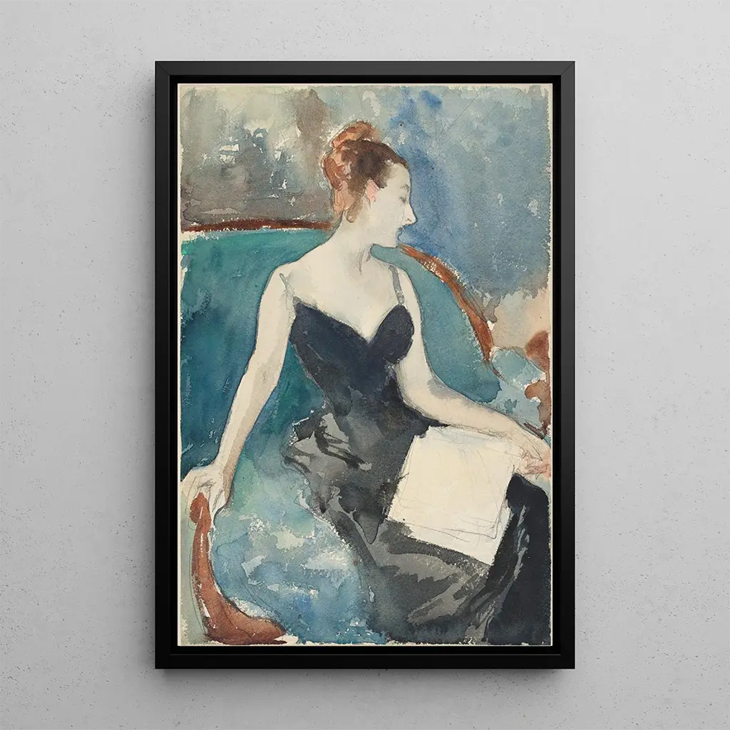 Het schilderij Madame Gautreau, ook bekend als Madame X, is een iconisch werk van John Singer Sargent dat de schoonheid en het mysterie belichaamt. In dit portret vangt Sargent de gratie van de mooie socialite, gekleed in een gedurfde zwarte jurk die haar slanke silhouet accentueert. De verfijnde details, zoals de plooien van de jurk en het lichtspel op haar huid, creëren een sfeer die zowel verleidelijk als verontrustend is. De intense blik van Madame Gautreau, gecombineerd met een licht provocerende houding, nodigt uit tot reflectie over de schoonheidsnormen en sociale status van die tijd.