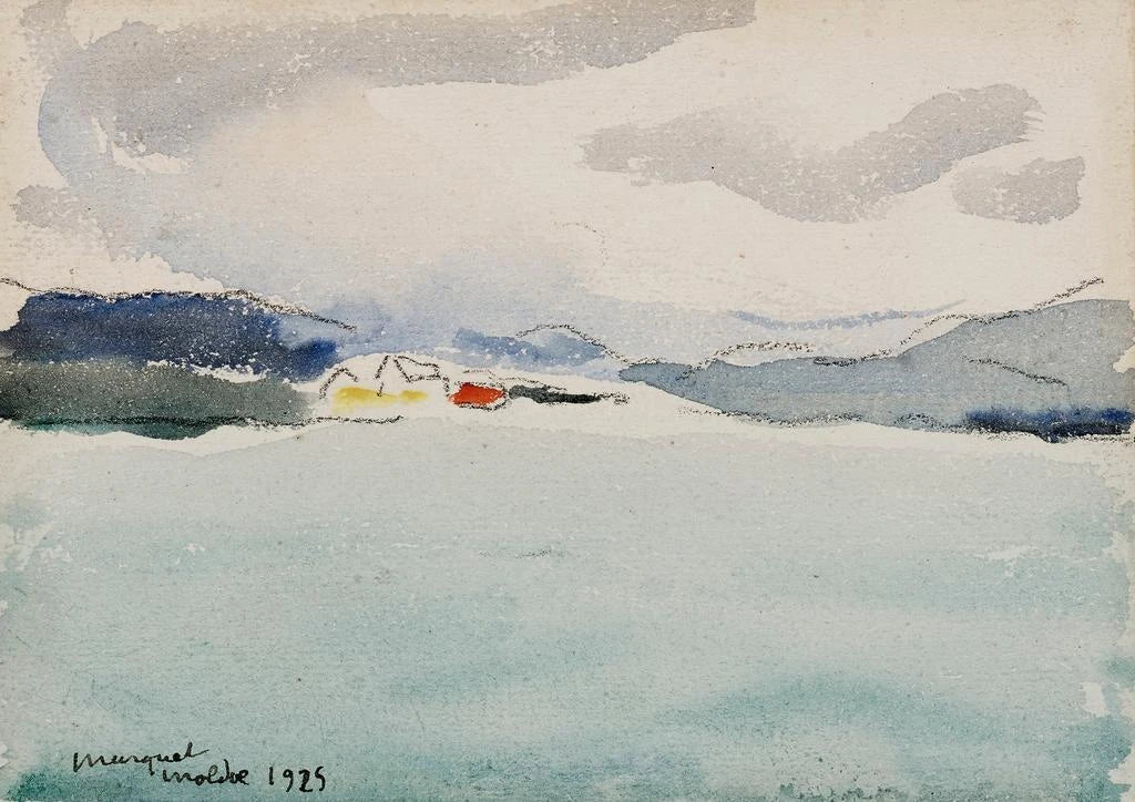 Albert Marquet, Franse schilder uit het begin van de 20e eeuw, wordt vaak beschouwd als een van de pioniers van het fauvisme, een artistieke beweging die de expressie door kleur benadrukt. Geïnspireerd door kunstenaars zoals Matisse en Derain, ontwikkelde Marquet een onderscheidende stijl die eenvoud en diepte combineert. Zijn carrière beslaat meerdere decennia, waarin hij diverse onderwerpen verkende, waaronder landschappen, marines en scènes uit het dagelijks leven. "Molde" is een perfect voorbeeld van zijn aanpak, waarbij licht en kleur centraal staan in zijn artistieke benadering. Dit werk getuigt van zijn talent om de essentie van de door hem geschilderde locaties vast te leggen.