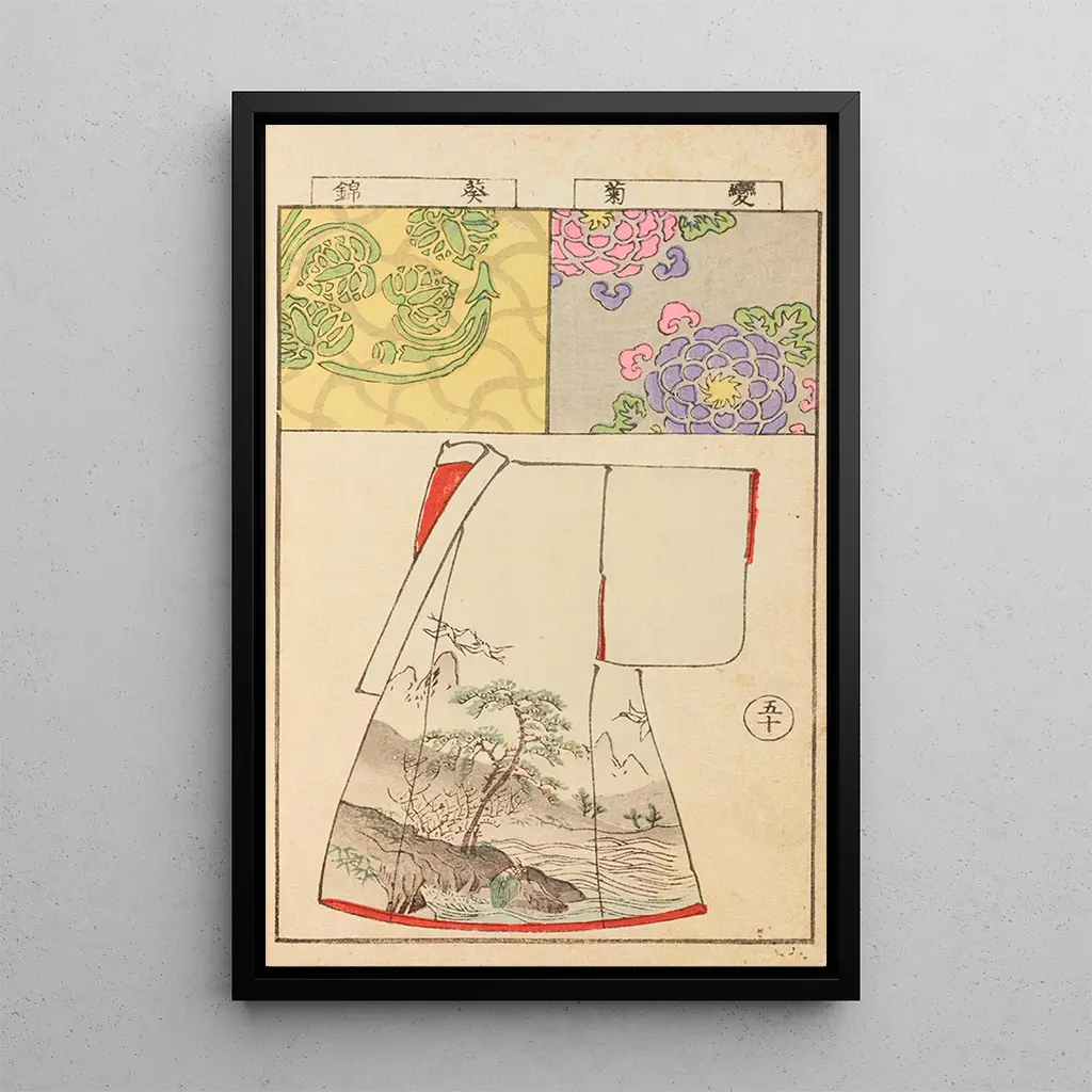De kunstdruk van het schilderij Moyo bijutsu benran Pl52 brengt ons in een wereld waar de motieven zich gracieus en poëtisch verweven. De levendige kleuren en de vloeiende vormen creëren een dromerige sfeer, uitnodigend tot ontsnapping. De techniek die Hironobu Asai gebruikt, waarbij aquarel en inkt worden gecombineerd, brengt minutieuze details tot leven die de blik boeien. Elk element van de compositie lijkt een verhaal te vertellen, en biedt de kijker een rijke en meeslepende visuele ervaring.