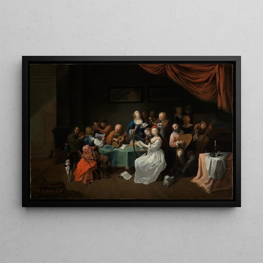 Muziekvermaak: een viering van harmonie De kunstdruk van "Muziekvermaak" dompelt ons onder in een wereld waar muziek en kunst samenkomen in een sprankelende harmonie. De levendige kleuren en de dynamische vormen van het doek roepen een feestelijke sfeer op, vol leven en energie. De personages, gekleed in opvallende kostuums, lijken te dansen op het ritme van de melodieën, waardoor een levendige scène ontstaat die de aandacht trekt. Elk detail, van muziekinstrumenten tot de vrolijke uitdrukkingen van de musici, draagt bij aan een feestelijke sfeer en nodigt de kijker uit om de magie van muziek te voelen door middel van visuele kunst. Johann Dallinger von Dalling: een barokke virtuoos Johann Dallinger von Dalling, actief in de achttiende eeuw, is een Oostenrijkse kunstenaar wiens werk binnen de barokke beweging valt. Geïnspireerd door de grote meesters van zijn tijd, ontwikkelde hij een unieke stijl die realisme en expressiviteit combineert. Dallinger von Dalling heeft vaak thema's gerelateerd aan muziek en dans verkend, wat de belangrijke rol van deze kunsten in de cultuur van zijn tijd weerspiegelt. Zijn werken, rijk aan details en kleuren, getuigen van een periode waarin kunst en muziek nauw verbonden waren en een volledige zintuiglijke ervaring boden aan de kijker. Een decoratief aanwinst met vele voordelen De kunstdruk van "Muziekvermaak" is een boeiende decoratieve keuze voor elke ruimte, of het nu een woonkamer, muziekkamer of creatieve werkruimte is. De hoge kwaliteit van de afdruk en de aandacht voor detail maken het een topstuk voor kunst- en muziekliefhebbers. Door dit schilderij in uw interieur te integreren, brengt u een vleugje dynamiek en vreugde, terwijl u de harmonie tussen de kunsten viert. Deze kunstdruk zal uw decor verrijken met zijn esthetische aantrekkingskracht en vermogen om positieve emoties op te roepen, waardoor de sfeer in uw leefruimte wordt getransformeerd.