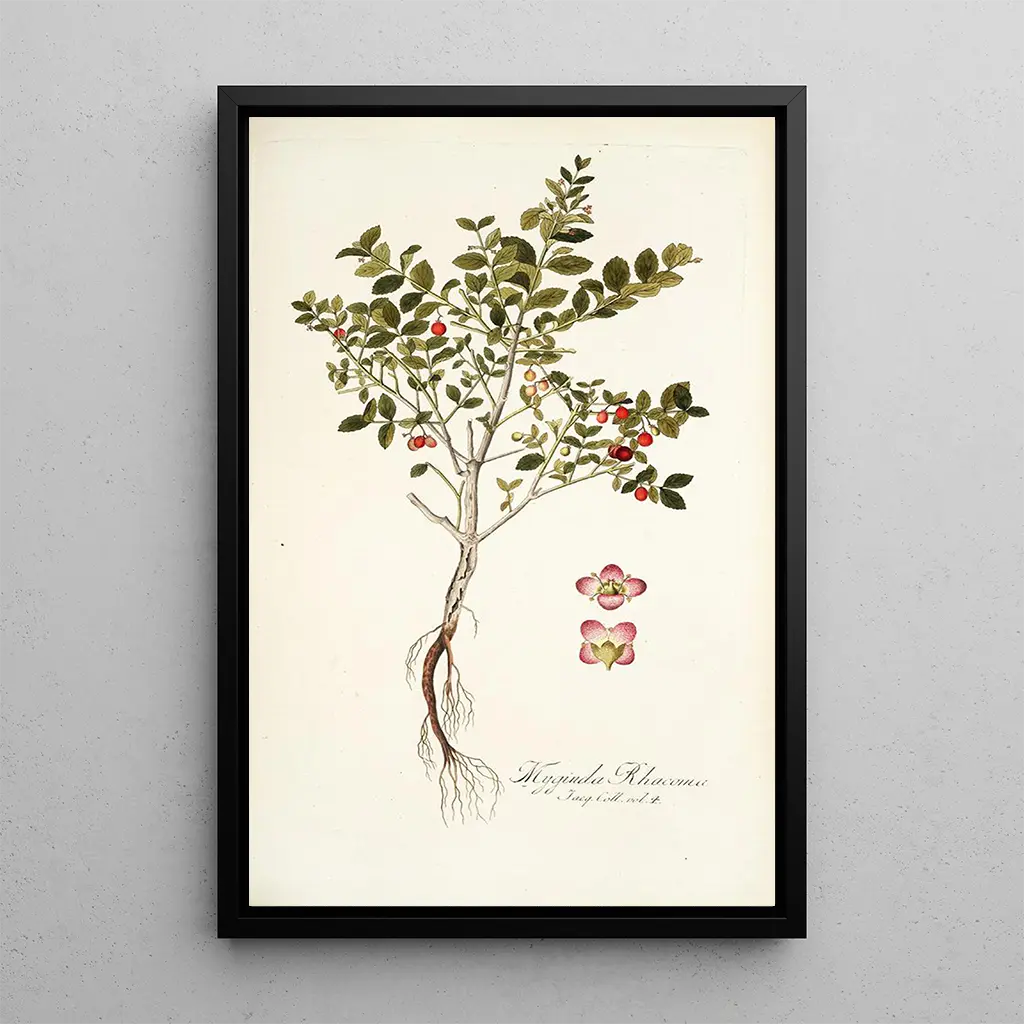 De kunstdruk van Myginda rhacoma, een werk van Nikolaus Joseph Freiherr von Jacquin, dompelt ons onder in de fascinerende wereld van de botanica. Dit doek benadrukt een plant met intrigerende vormen en delicate kleuren, die de rijkdom van de tropische flora oproepen. De aquareltechniek, beheerst door Jacquin, maakt het mogelijk om de subtiele nuances van de bladeren en bloemen nauwkeurig weer te geven. De sfeer die uit dit werk straalt, is zowel levendig als sereen, en nodigt uit tot een aandachtige contemplatie van de natuurlijke schoonheid. Elk detail wordt zorgvuldig bestudeerd, wat getuigt van de expertise van de kunstenaar en zijn liefde voor de natuur.