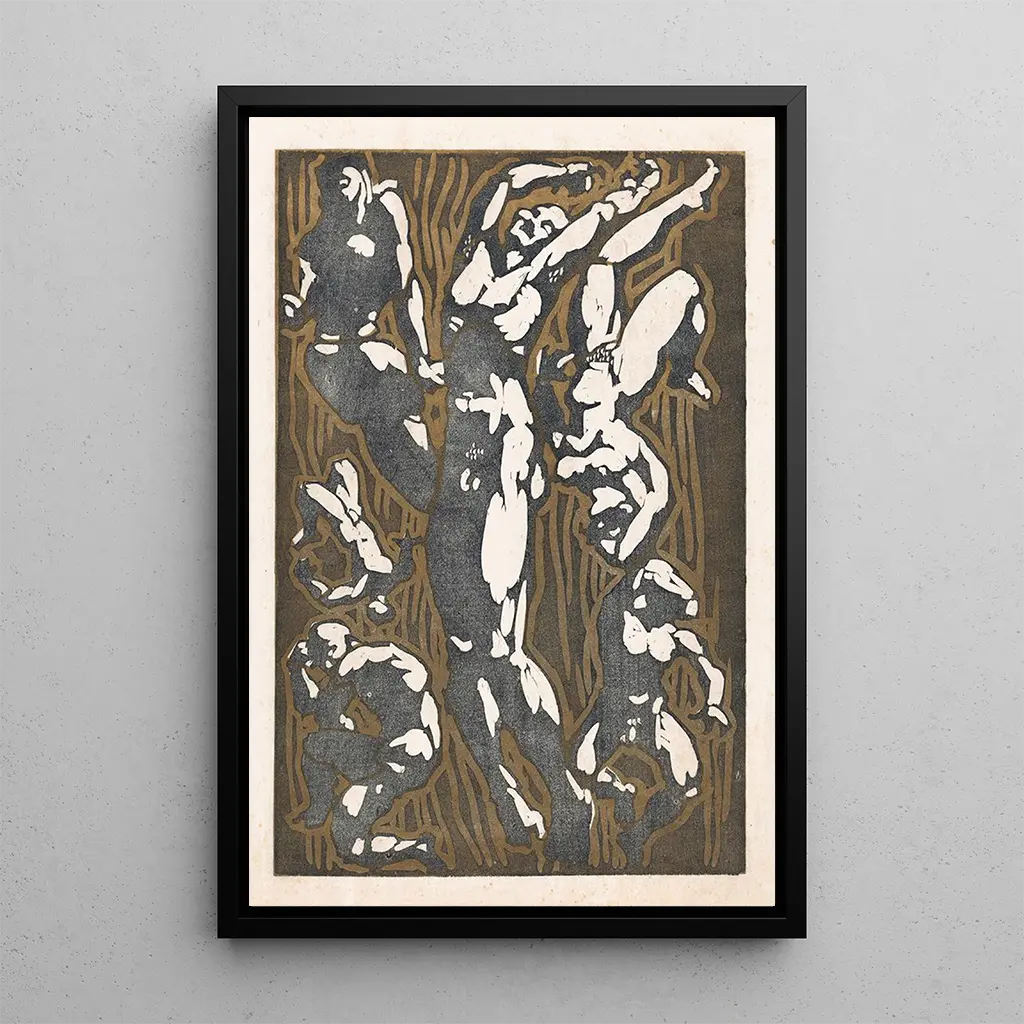 Die kunstdruk "Figuren nackt in verschiedenen Posen" von Reijer Stolk ist eine Feier der menschlichen Form, bei der jede Kurve und jeder Winkel mit bemerkenswerter Feinfühligkeit hervorgehoben wird. Die warmen, erdigen Farben verschmelzen zu einer Atmosphäre, die sowohl intim als auch kontemplativ ist. Die Technik von Stolk, die Realismus mit einem Hauch von Stilisation verbindet, lässt die Figuren lebendig erscheinen, fast in Bewegung. Jede Pose erzählt eine Geschichte und lädt den Betrachter ein, über die Natur der Schönheit und des Körpereinsatzes nachzudenken. Dieses Werk ist eine wahre Hommage an die Vielfalt der menschlichen Formen und fängt das Wesen des Lebens selbst ein.
