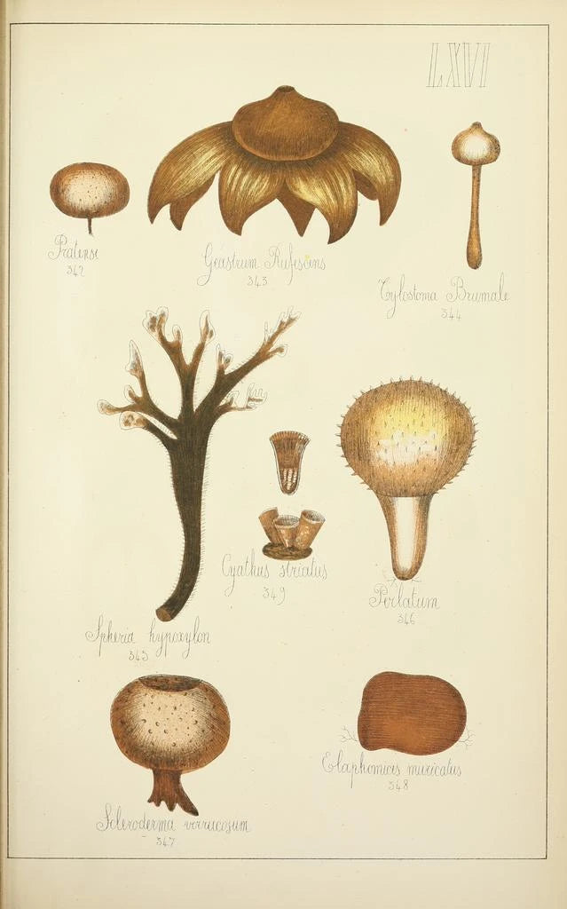 Schilderij Natuurlijke geschiedenis van de paddenstoelen Pl66 - Guillaume Sicard | Kunstdruk