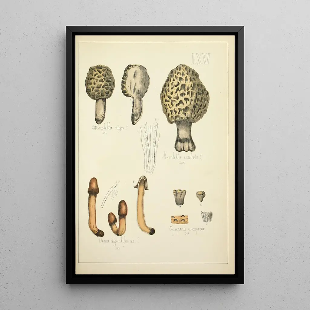 De kunstdruk Histoire naturelle des champignons Pl71 van Guillaume Sicard dompelt ons onder in een wereld waar de natuur zich met subtiliteit ontvouwt. Dit werk, rijk aan details, benadrukt een palet van aardse en levendige kleuren die de diversiteit van de champignons oproepen. De aquareltechniek, met precisie toegepast, geeft elke paddenstoel een bijna tastbare textuur. De sfeer die uit dit doek straalt, is zowel rustgevend als intrigerend, en nodigt de kijker uit tot een aandachtige contemplatie van de vormen en nuances die dit fascinerende ecosysteem vormen.