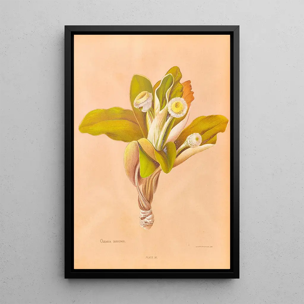 De kunstdruk van "Oleria insignis" is een decoratief stuk dat elke ruimte kan verrijken, of het nu een woonkamer, kantoor of slaapkamer is. De afdrukkwaliteit garandeert een opmerkelijke fideliteit aan de kleuren en details van het originele kunstwerk, waardoor je ten volle kunt genieten van de esthetische aantrekkingskracht. Door deze doek in je interieur te integreren, breng je een vleugje natuur en elegantie in je huis. Dankzij de veelzijdigheid in het combineren met verschillende decoratiestijlen is het een ideale keuze voor wie een frisse en poëtische toets aan hun omgeving wil toevoegen.