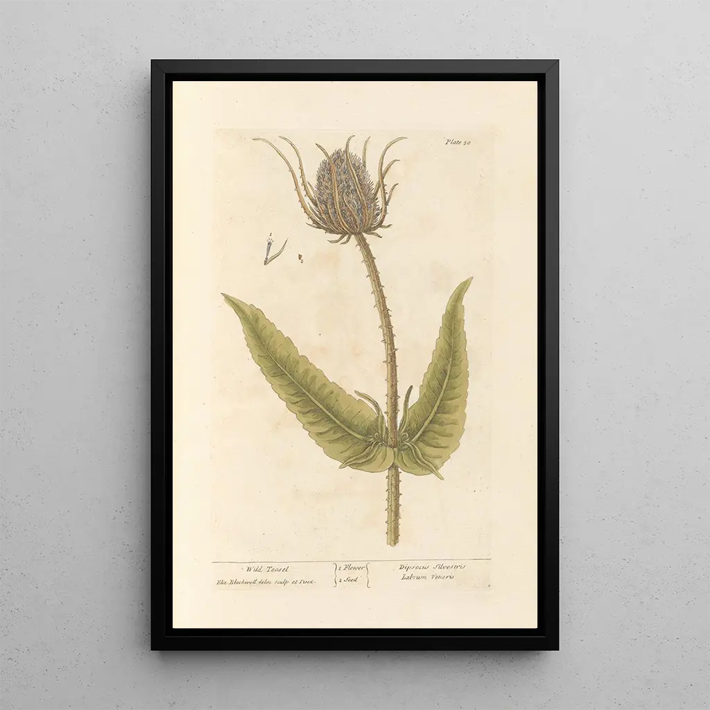 Cardère sauvage : een delicate viering van de natuur De kunstdruk van de Cardère sauvage, vervaardigd door Elizabeth Blackwell, brengt ons in een bloemrijk universum doordrenkt van verfijning. De minutieuze details van deze plant, met zijn levendige groene bladeren en felpaarse bloemen, tonen een uitzonderlijke beheersing van de aquarel. De harmonieuze compositie, waarin elk element lijkt te dialogeren met het volgende, creëert een rustgevende en contemplatieve sfeer. De kunstenaar slaagt erin de vergankelijke schoonheid van de natuur vast te leggen, en nodigt de kijker uit om de eenvoud en rijkdom van de flora te waarderen. Elizabeth Blackwell : pionier in botanische illustratie Elizabeth Blackwell, actief in de achttiende eeuw, wordt erkend als een iconische figuur in de botanische illustratie. Geboren in 1707 in Schotland, wijdde ze haar leven aan de getrouwe weergave van planten, beïnvloed door de wetenschappelijke ontdekkingen van haar tijd. Haar belangrijkste werk, "A Curious Herbal", gepubliceerd in 1737, werd geprezen om zijn precisie en esthetiek. Blackwell opende de weg voor vele vrouwen in het veld van botanische kunst, en bewees dat passie en talent de barrières van gender overstijgen. Haar werk blijft een waardevol getuigenis van de relatie tussen kunst en wetenschap. Een decoratief bezit met vele voordelen De kunstdruk van de Cardère sauvage is een ideaal decoratief stuk om je interieur te verrijken, of het nu in een woonkamer, kantoor of slaapkamer is. De kwaliteit van de afdruk garandeert een trouwheid aan de kleuren en details van het origineel, en brengt een vleugje natuur in je decoratie. Dit schilderij, met zijn esthetische aantrekkingskracht, past harmonieus in diverse stijlen van inrichting, van klassiek tot modern. Door deze doek te kiezen, geef je je ruimte een fris en elegant accent, terwijl je het talent van Elizabeth Blackwell viert.